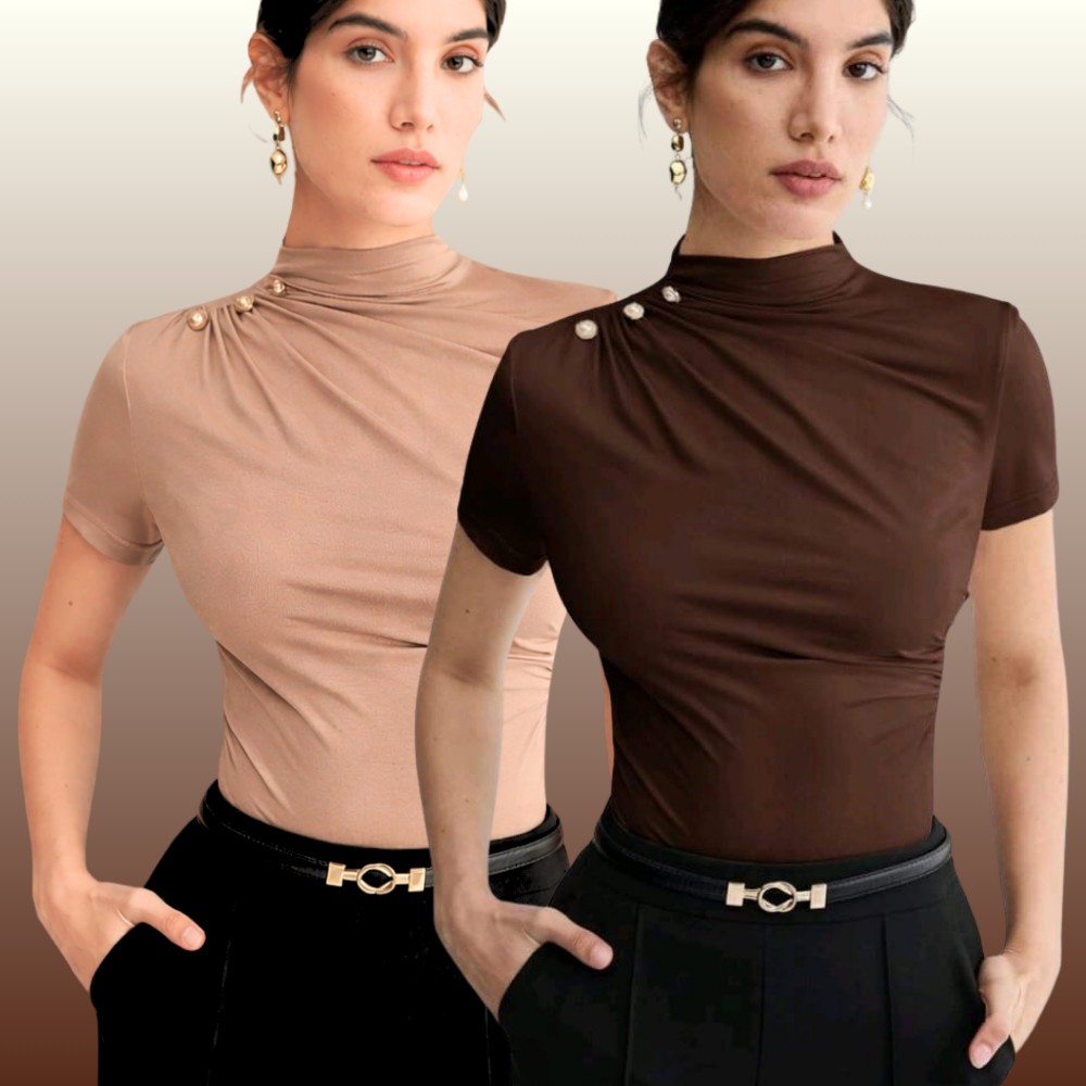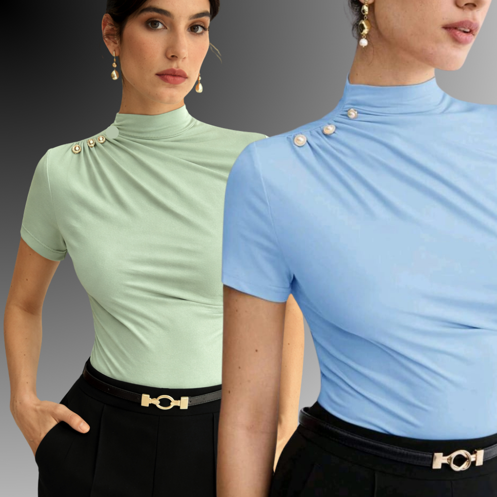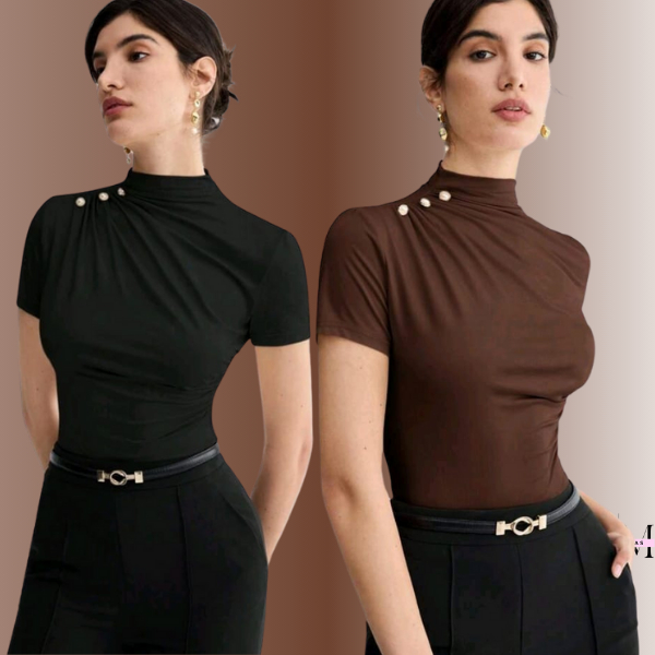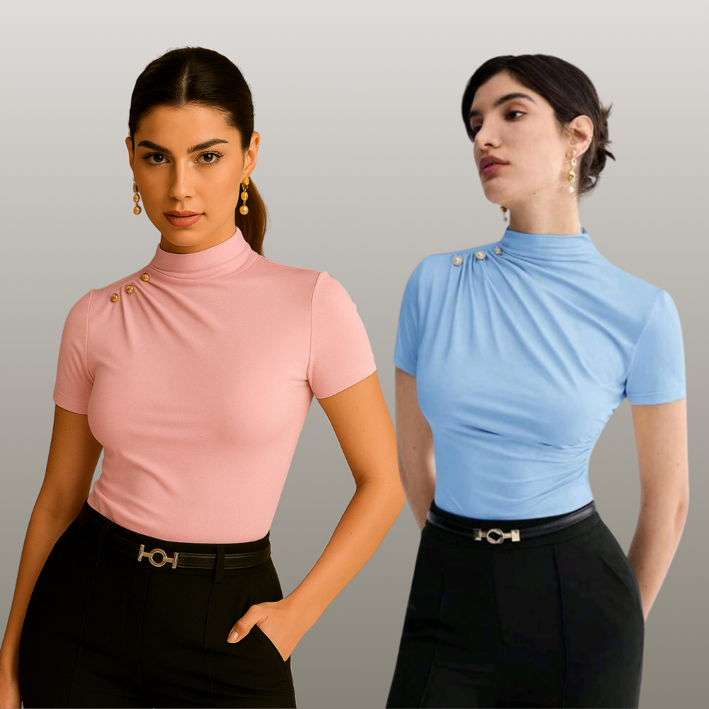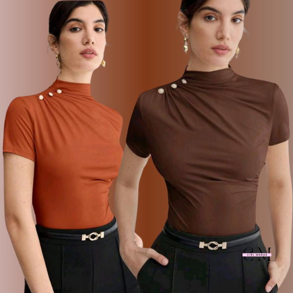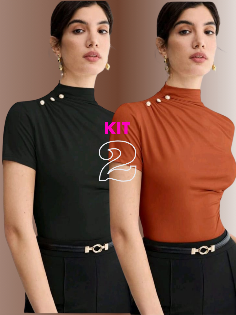 KIT 2 BLUSA Feminina ESTILOSA Suplex Blusinha Feminina Elegante Gola Alta Delicada Social Blusas