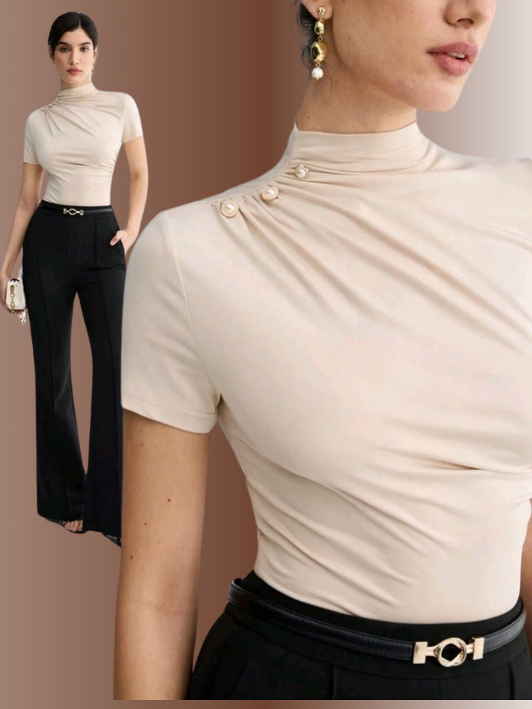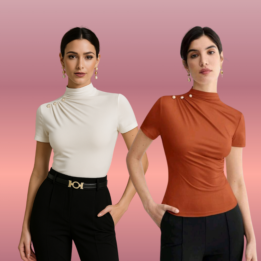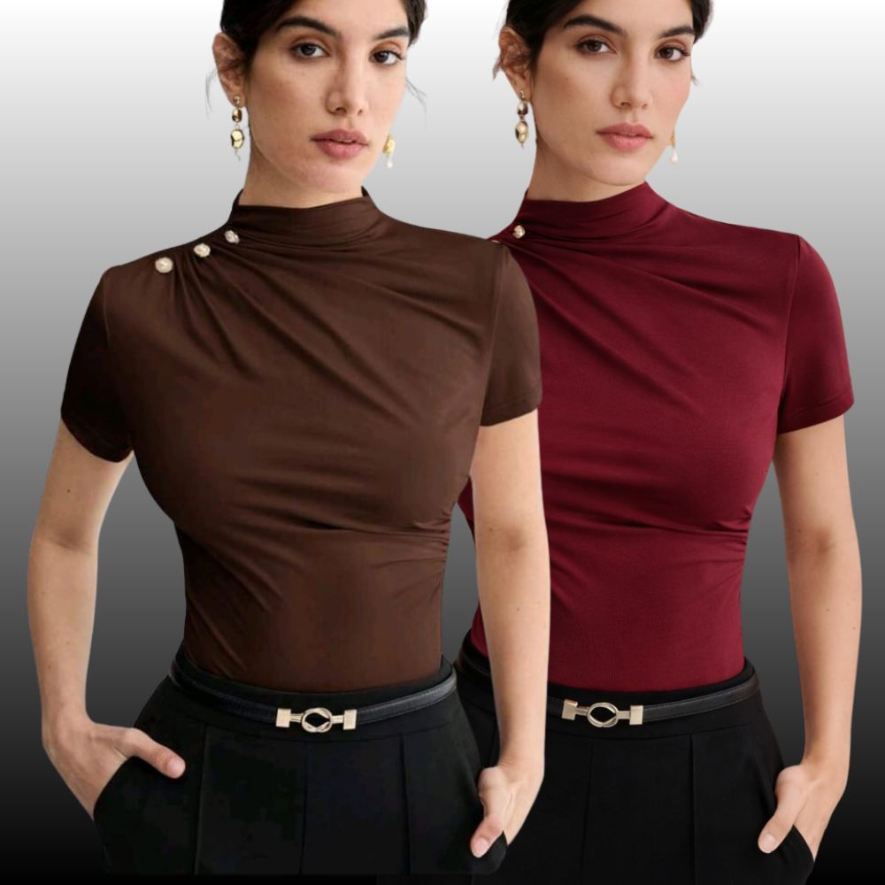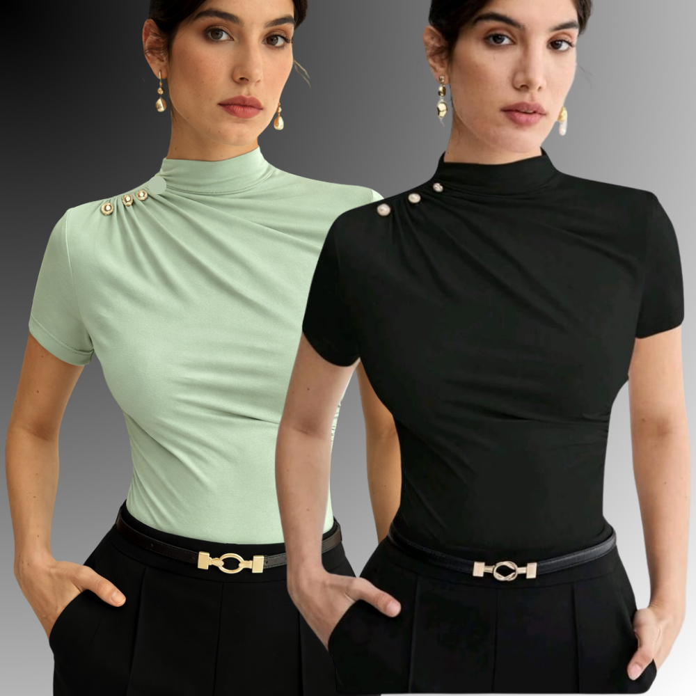KIT 2 BLUSA Feminina ESTILOSA Suplex Blusinha Feminina Elegante Gola Alta Delicada Social Blusas