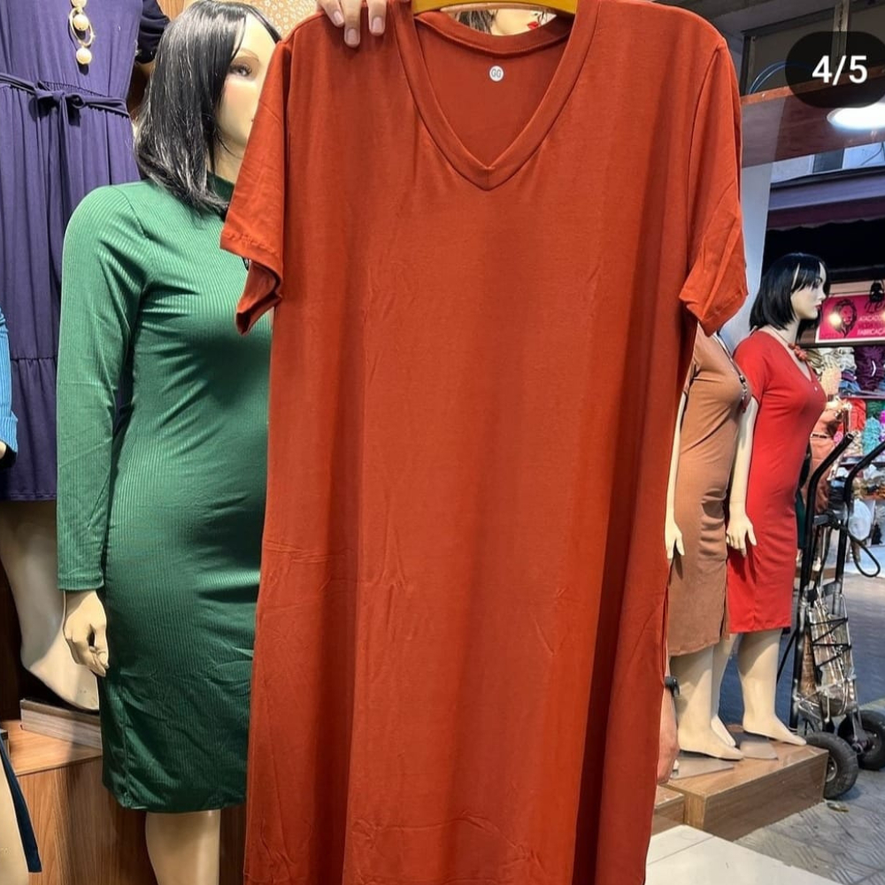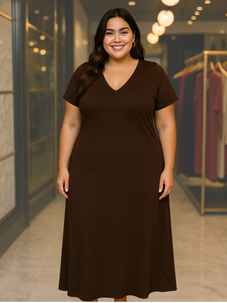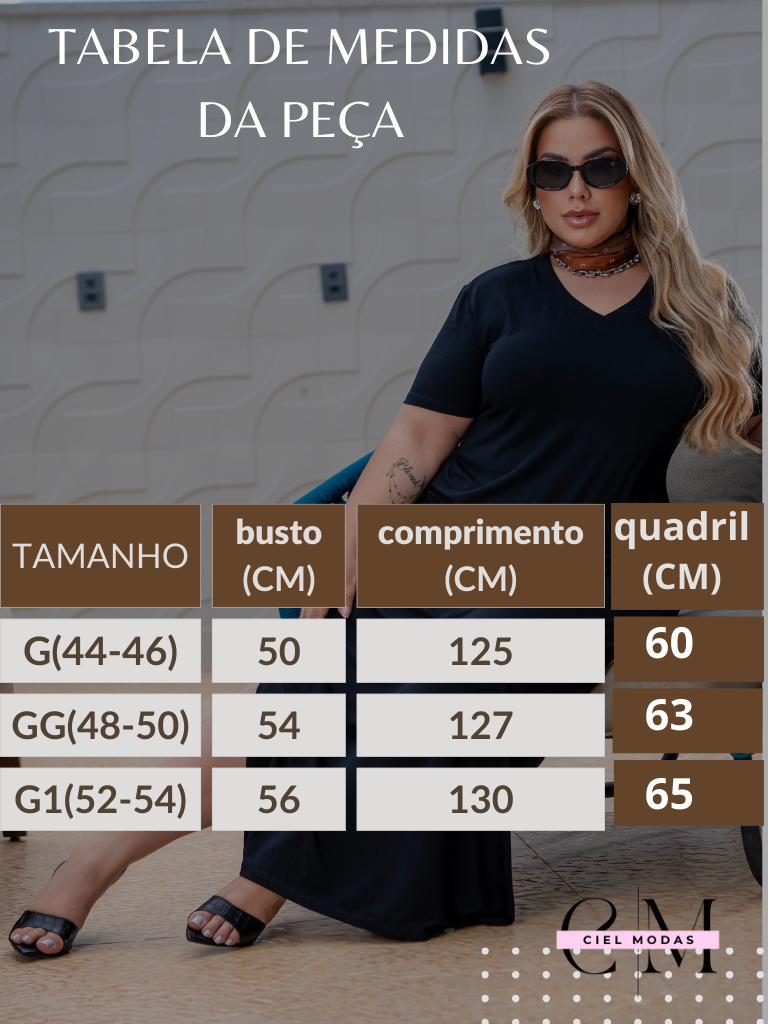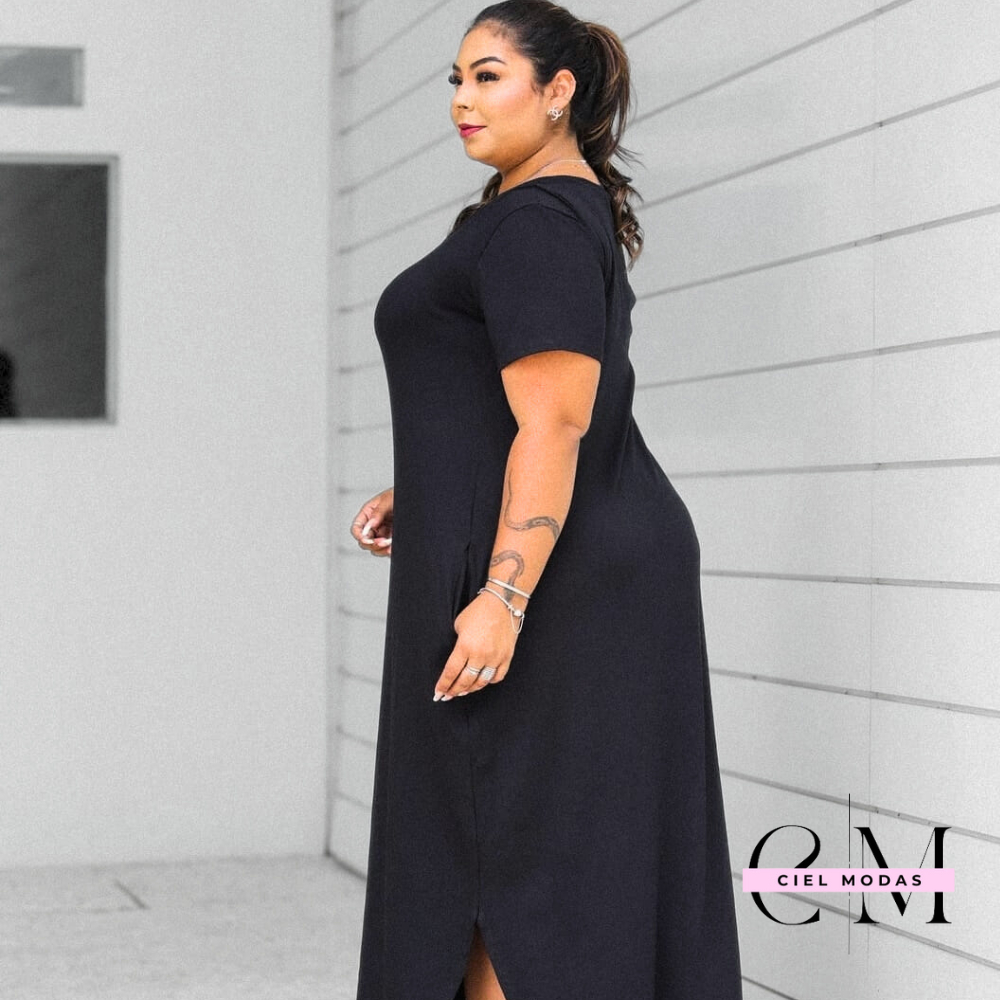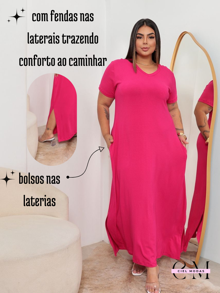Vestido plu size feminino longo gola V 44 - 54 viscolycra premium confortável vestidos plus soltinho