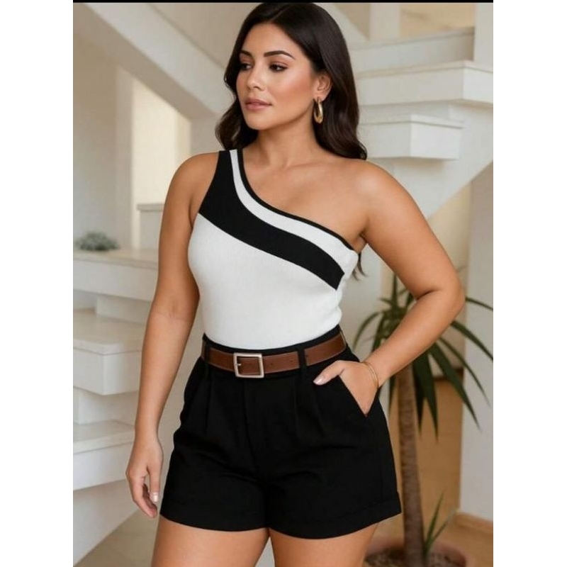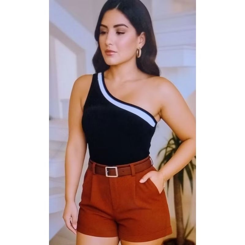 Conjunto Short Alfaiataria + Body Tecido Anarruga