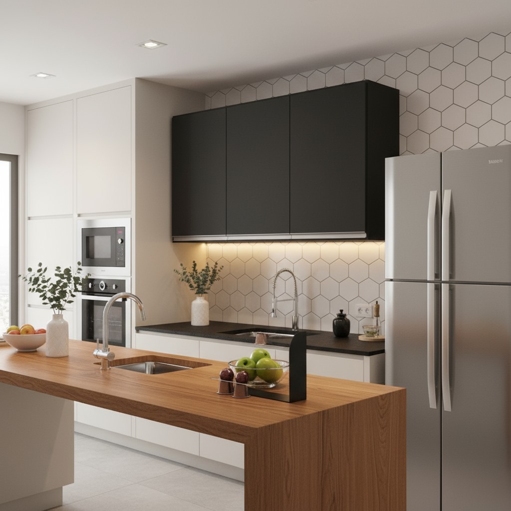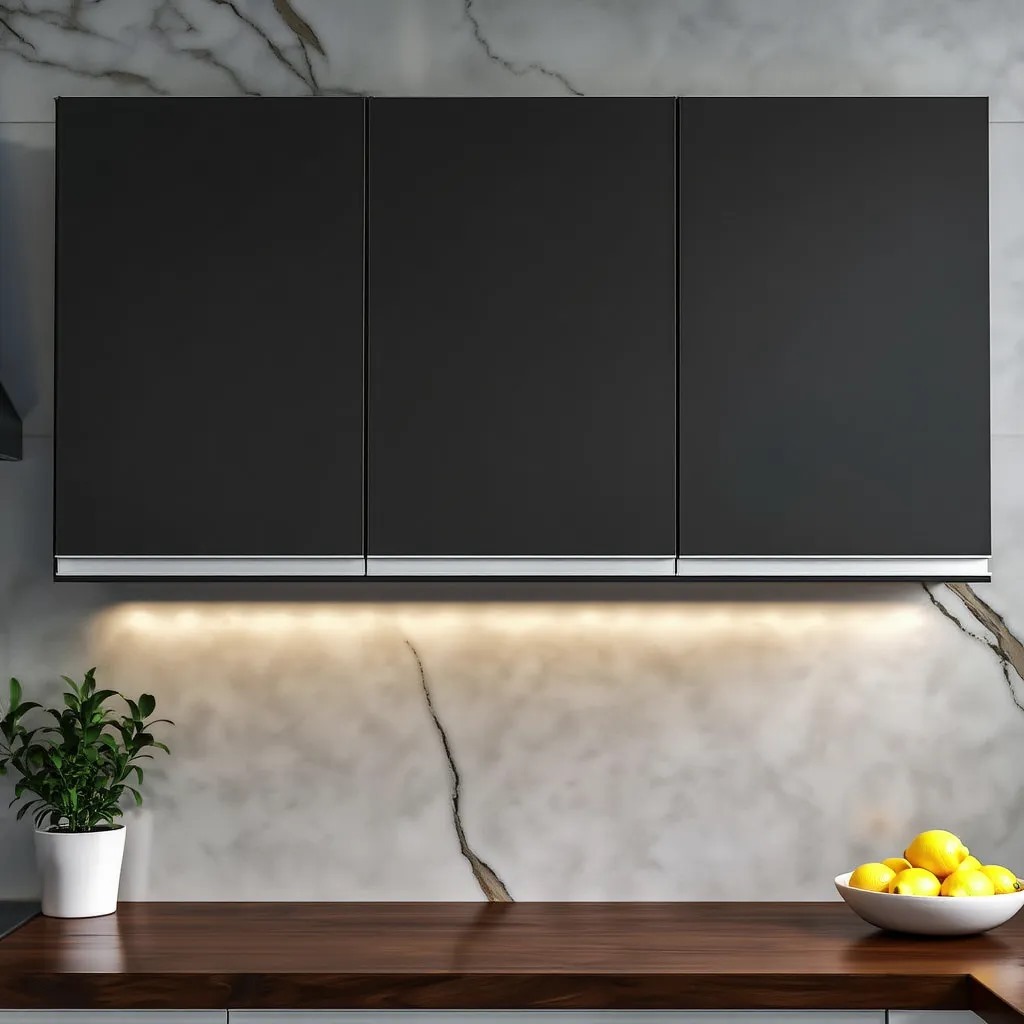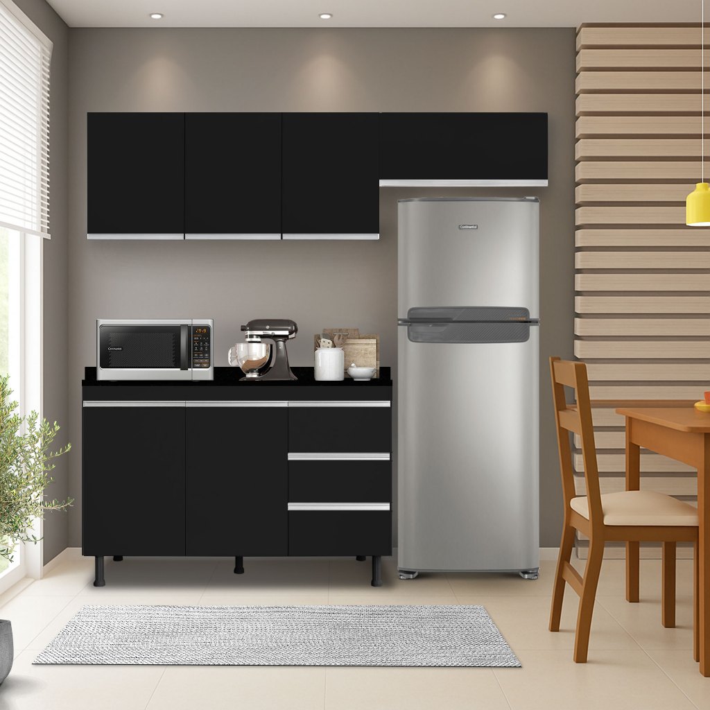 Armário Aéreo de Cozinha e Lavanderia 120cm 3 Portas MDF Preto