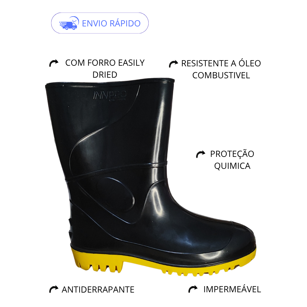 Bota Galocha PVC Cano Médio Impermeavel Açougue Cozinha Restaurantes Hotel Industrial Abatedouros Motociclista Pescaria