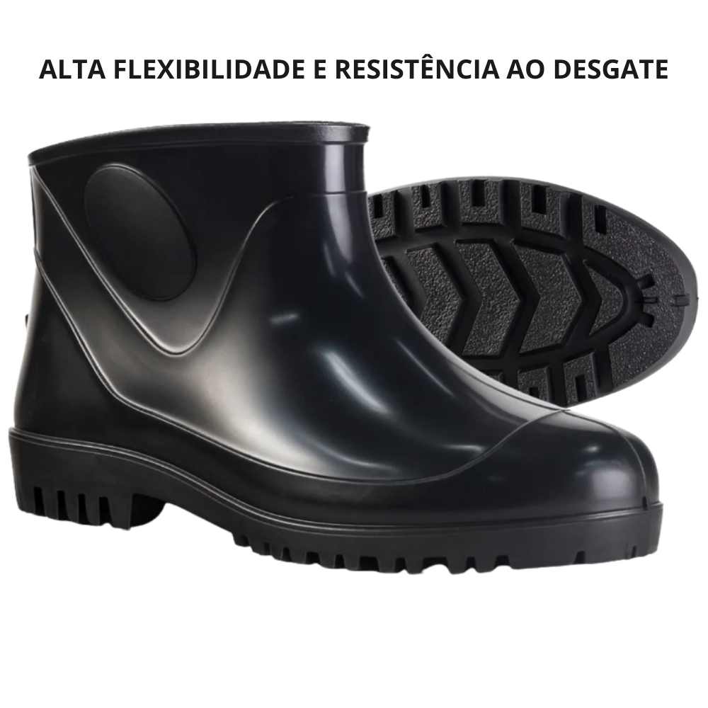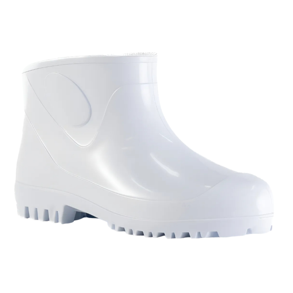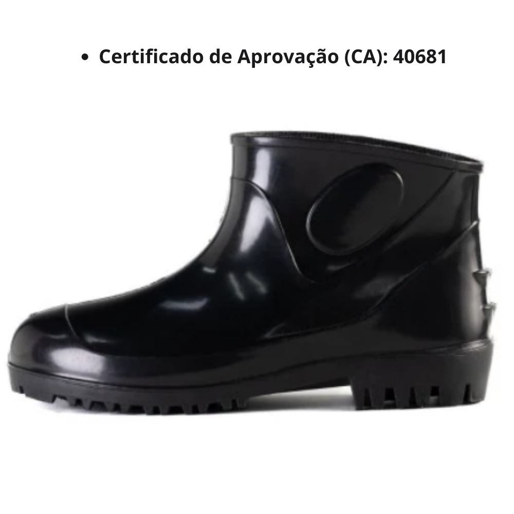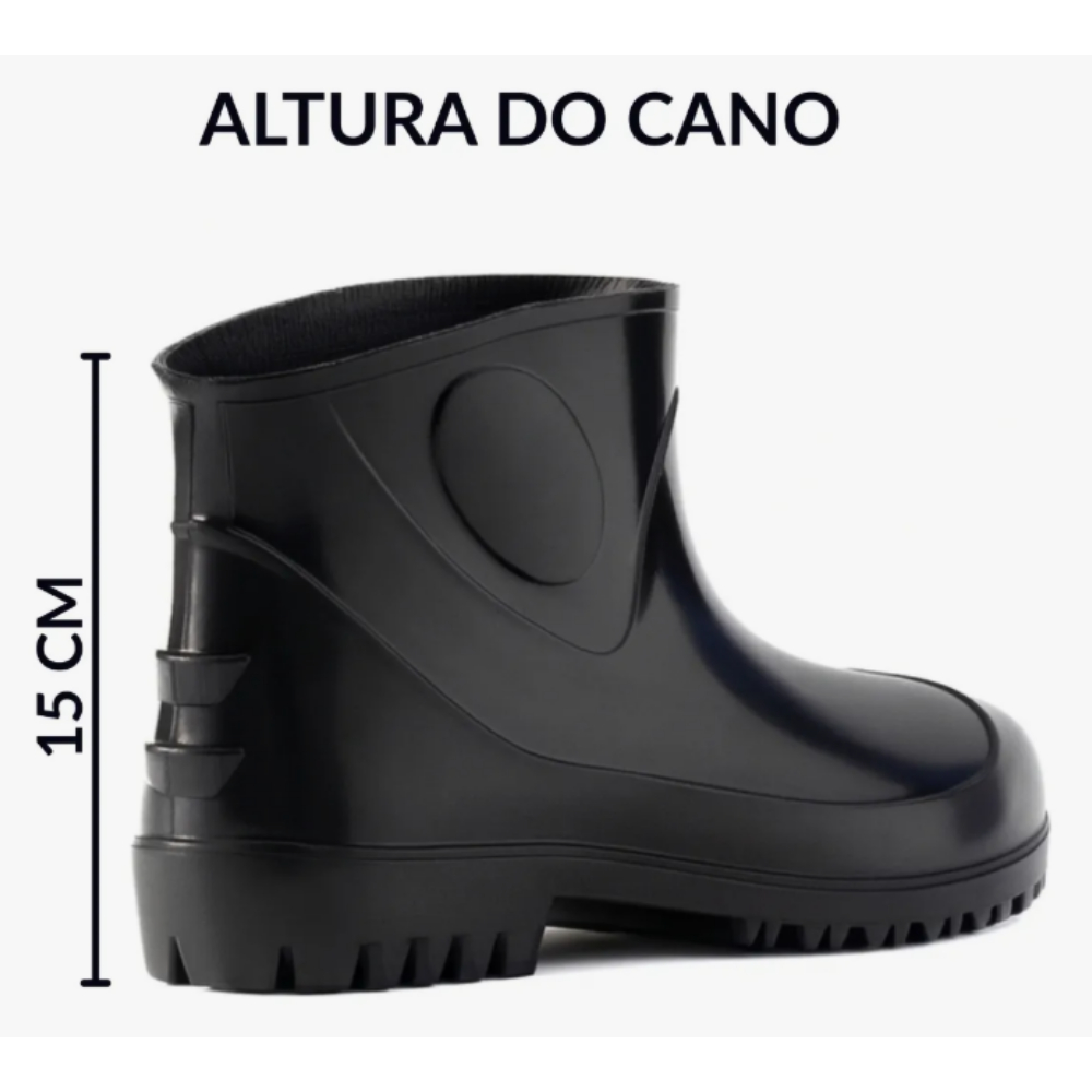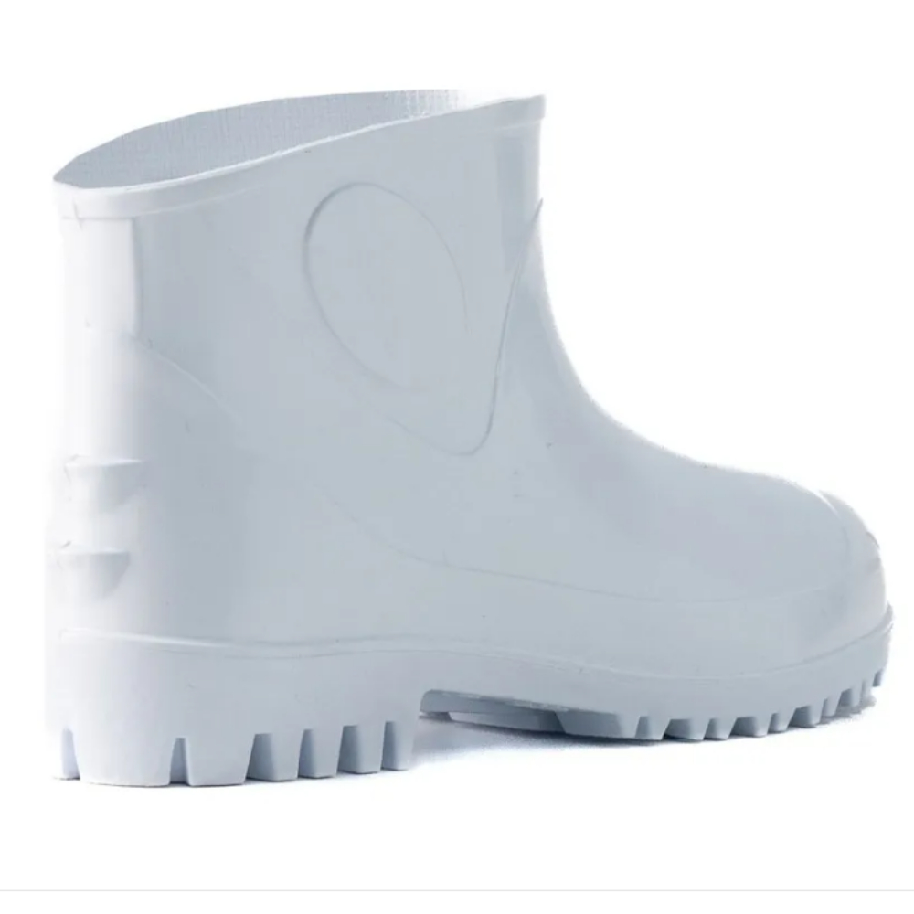 Bota Galocha PVC Preta e Branca Impermeável Antiderrapante CA40681 Cano Curto Profissional Domestica
