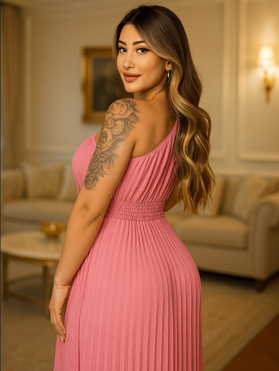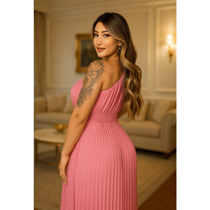 Vestido Plissado Unilateral Feminino MULA MANCA para Eventos corporativos casamentos e formatura