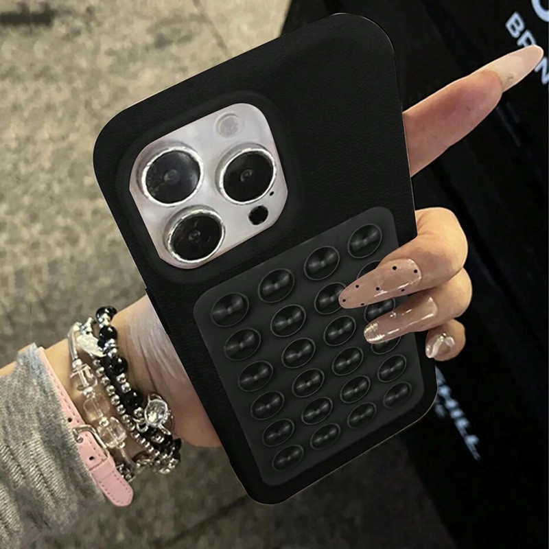 Capa De Couro Com Suporte De Ventosa 3D Para iPhone 17 16e 15 14 13 12 11 Pro Max Plus XS Litchi Padrão Macia