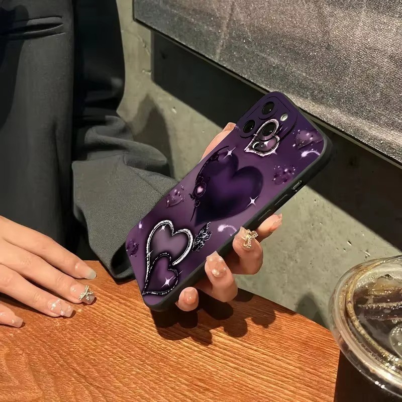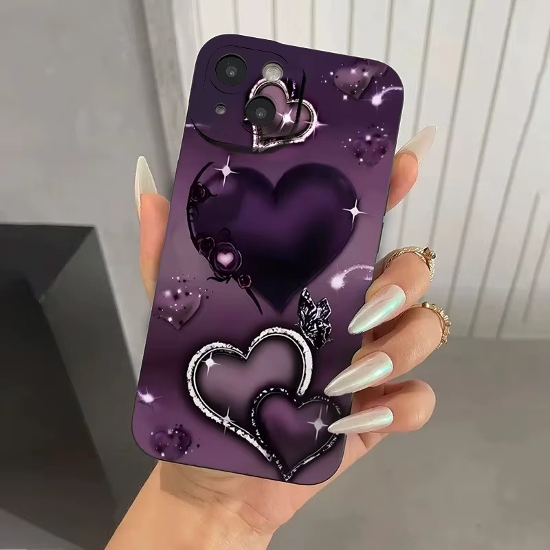 Capa De Design Roxo Em Forma De Coração Para Redmi 13 14C 12 13C Note 14 13 12 11 Pro Plus Turbo 12S 10 Macia