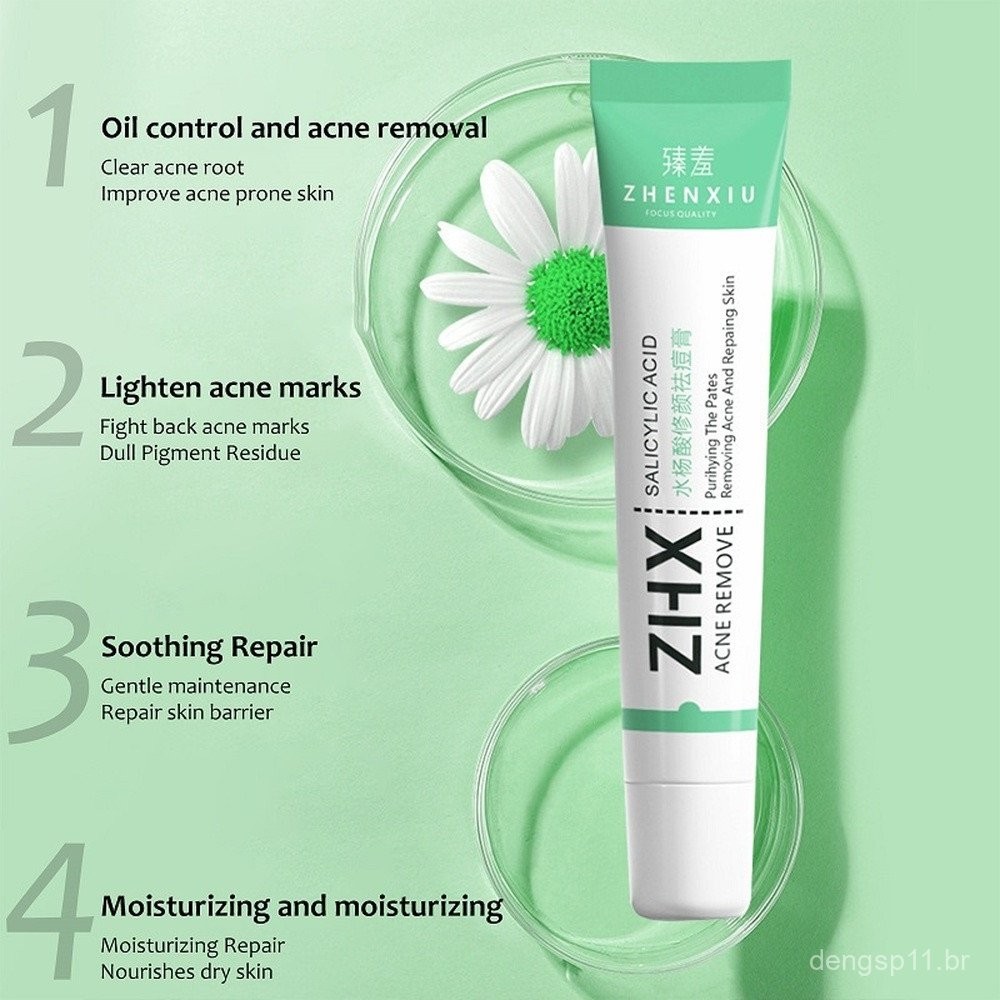 Creme Facial Anti-Acne com Ácido Salicílico para Remover Oleosidade e Cravos, Clareamento de Cicatrizes