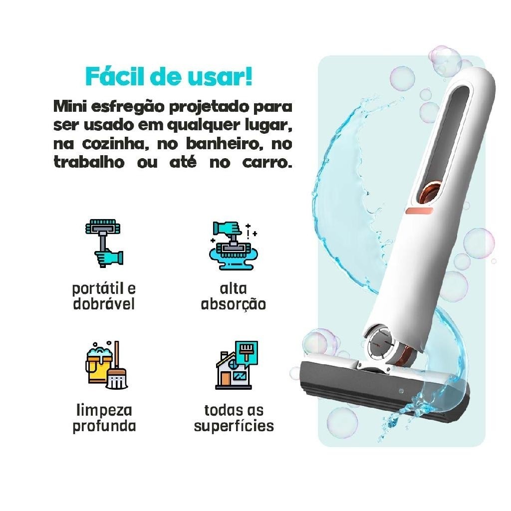 Mini Esfregão Portátil Absorvente Auto-Squeeze Limpeza Multifuncional