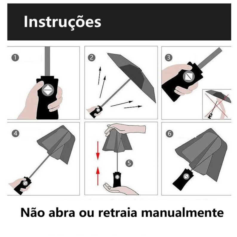 Guarda Chuva Automático Abre E Fecha Reforçado Contra Vento Proteção Solar Blackout