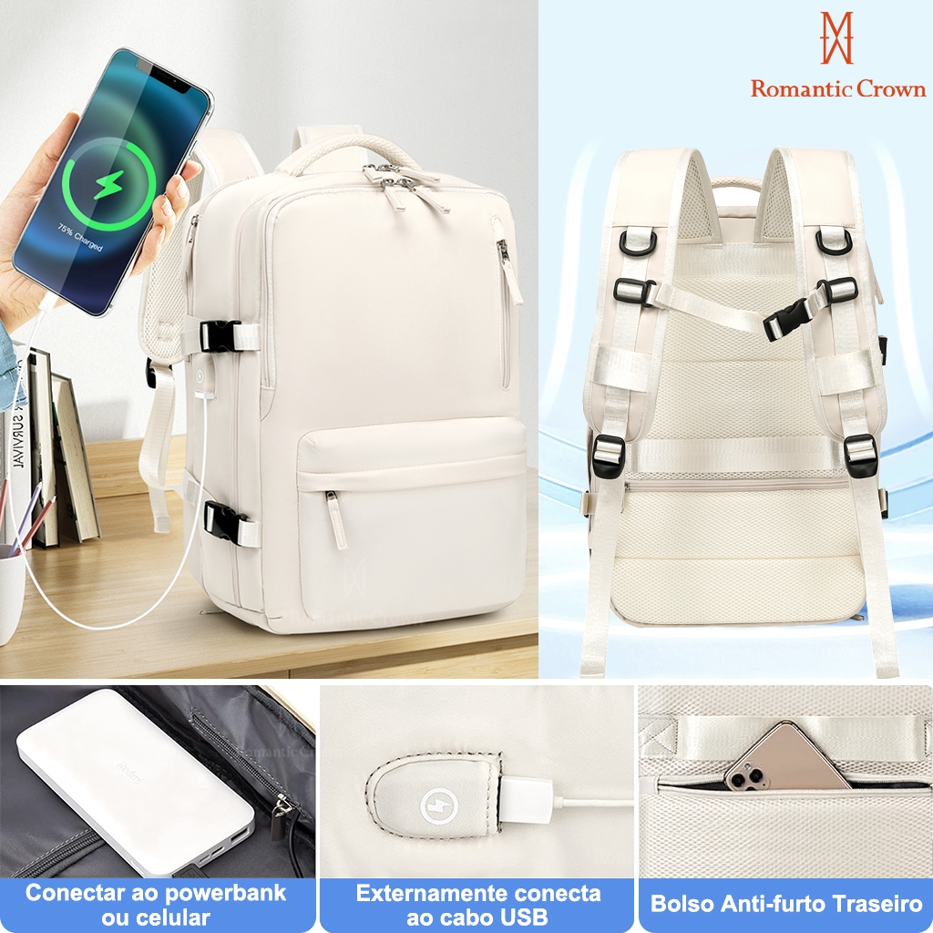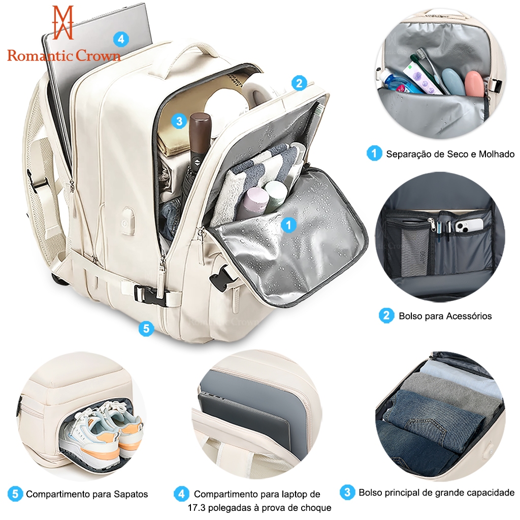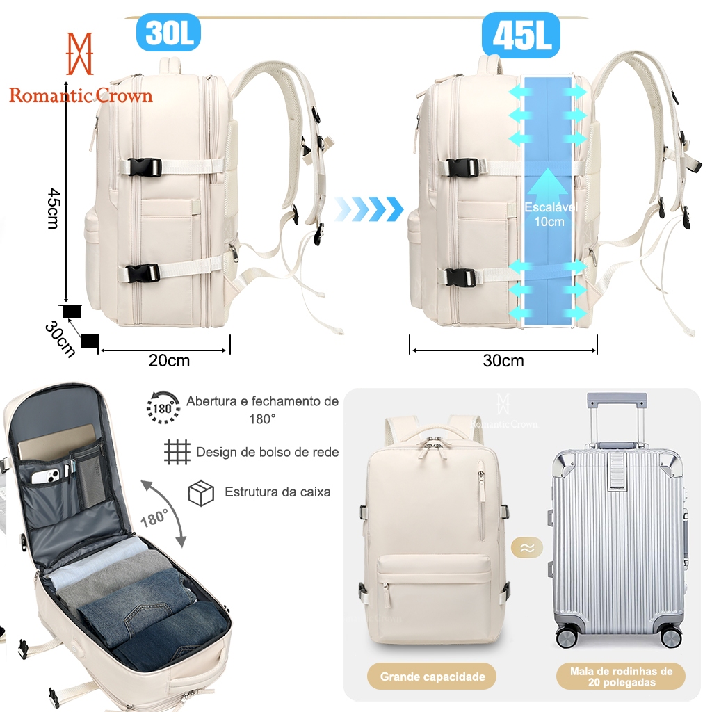 Mochila De Viagem Feminina Multifuncional Impermeável Expansível Reforçada para Trilha Esportiva