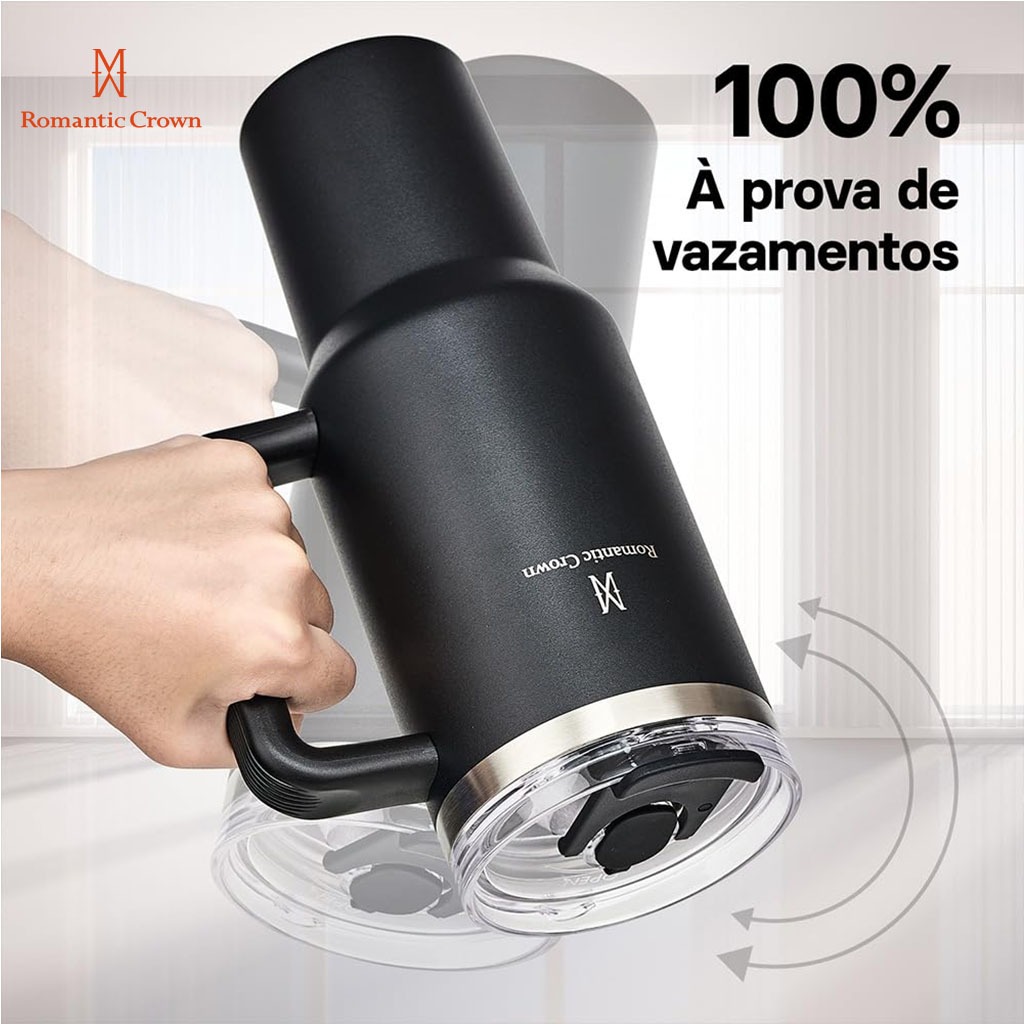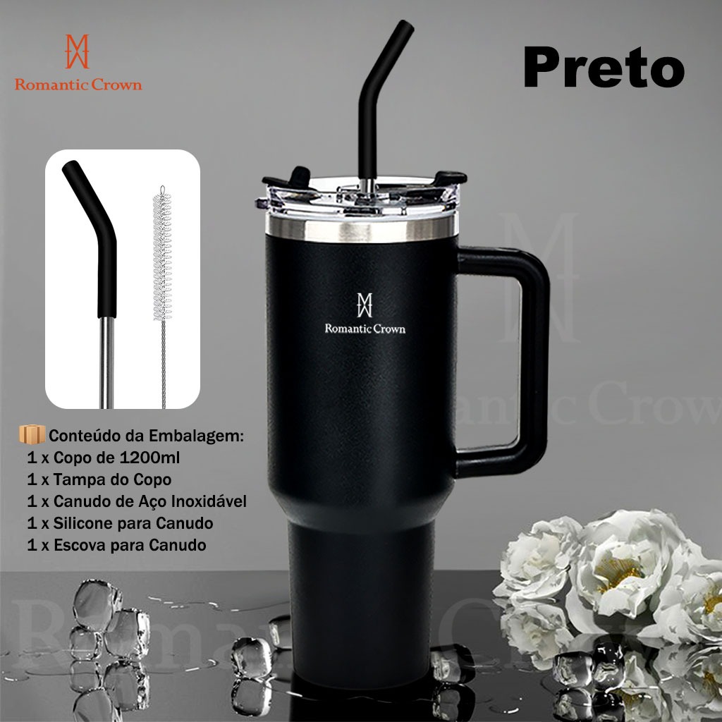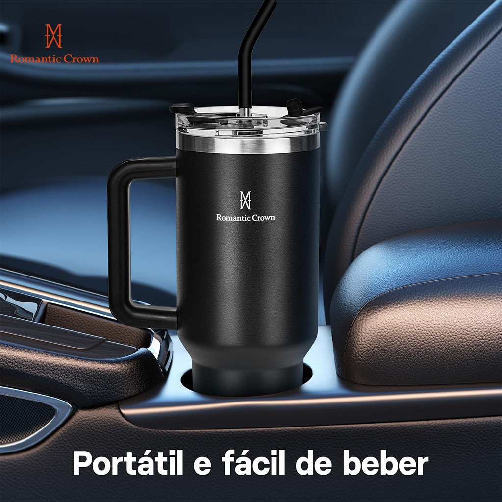 ROMANTIC CROWN Copo Térmico Inox Portátil 600ml/1.2l com Tampa e Canudo Garrafa Térmica Inoxidável