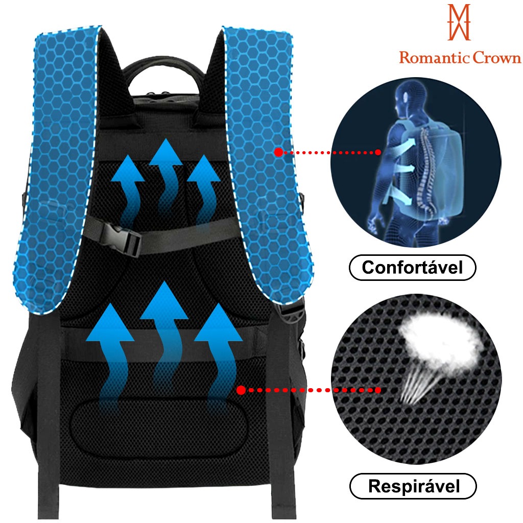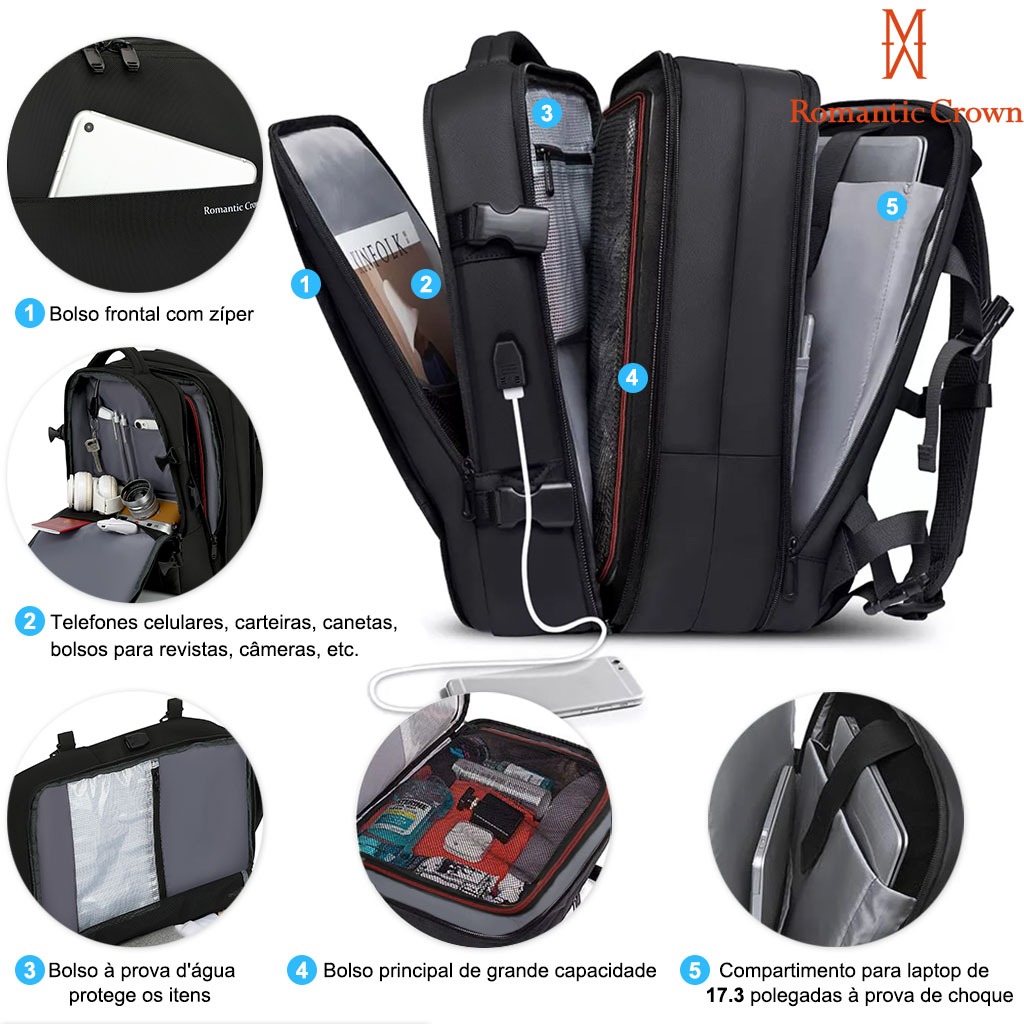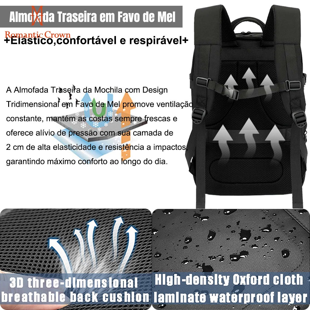 ROMANTIC CROWN Mochila de Viagem Executiva Expansível 45L Reforçada para Notebook Masculina e Feminina