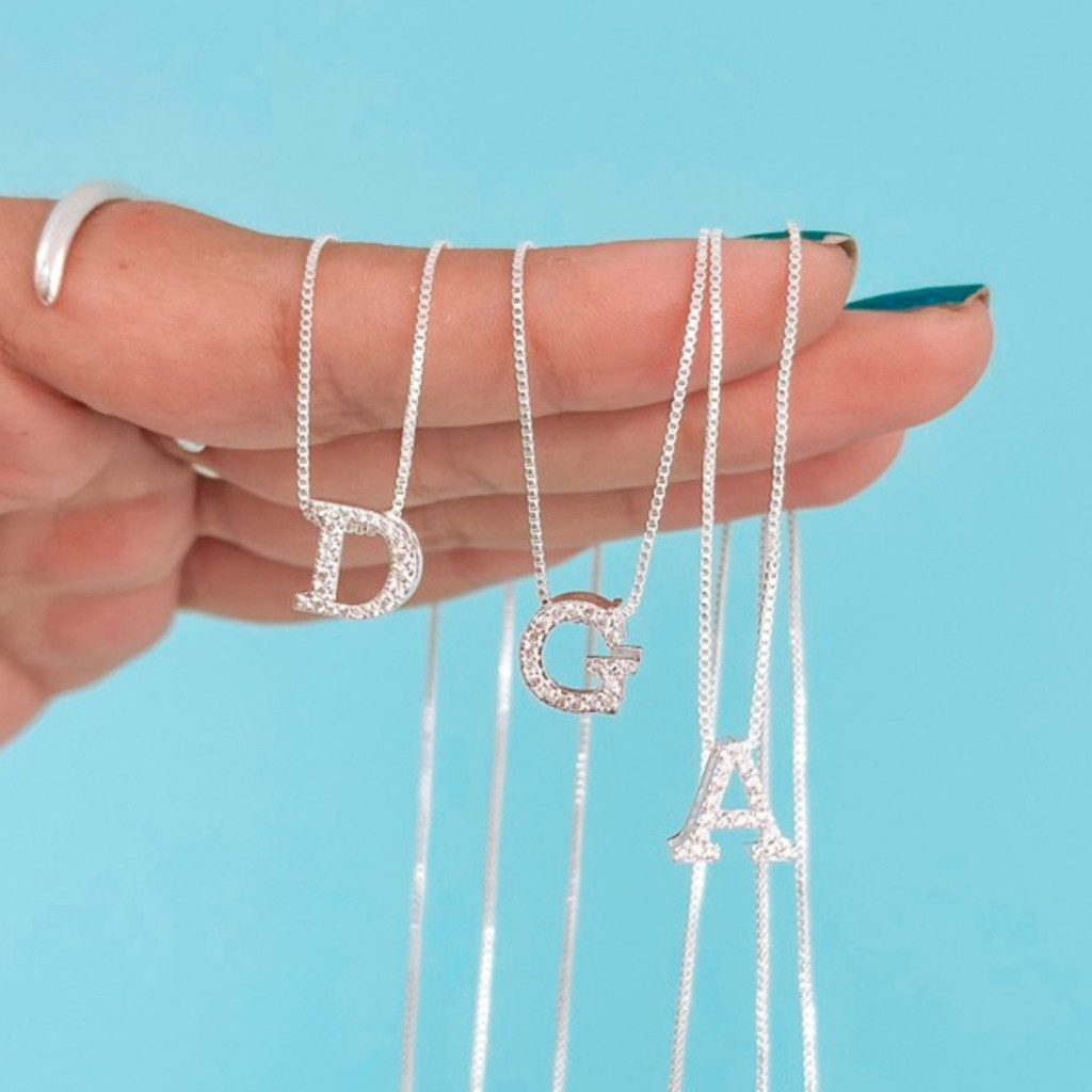 Colar inicial cravejada banhado à prata 925