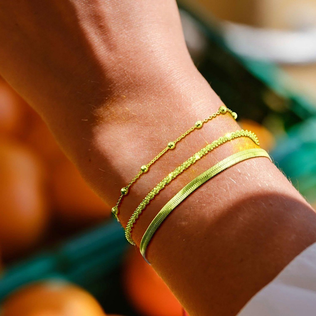 Kit 3 Pulseiras Hip Hop Feminino Estrelado + Liso Metalizada + Pulseira Feminina de Bolinha Banhada prata 925 Ouro 18k