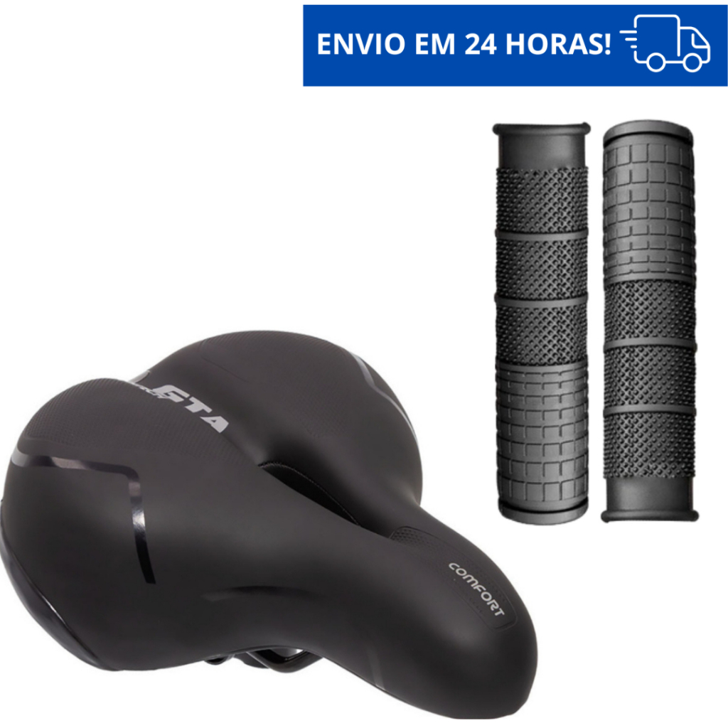Banco Selim de Bicicleta 2 Molas Largo Macio Fita Refletiva Segurança Confortável Par Manopla MMGK