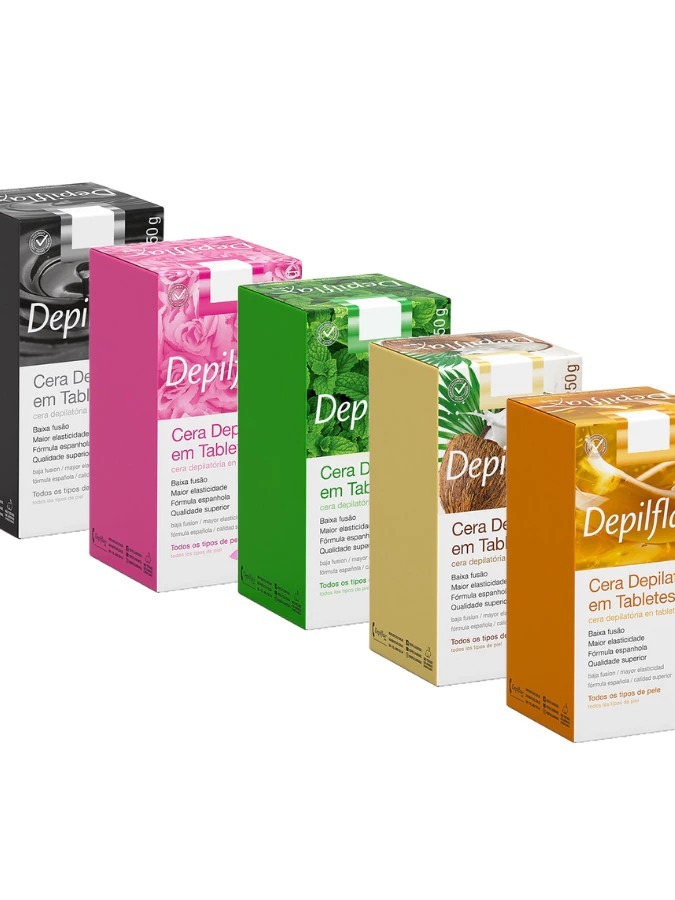 Depilflax Cera Depilatória em Tabletes Natural Hortela Negra Morango Coco Todos Tipos de Pele 250g