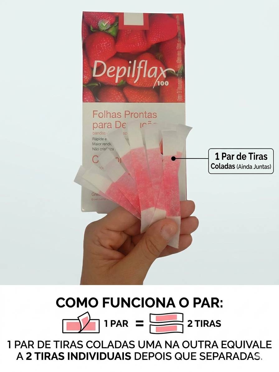 200 tiras (100 duplas) cera para Sobrancelhas facial Depilflax Original Sortidos Morango Hortela Mel