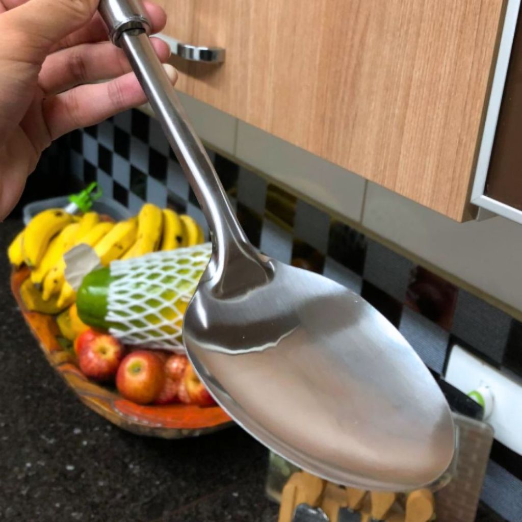 KIT 4 Colher de Arroz GRANDE Aço Inox Cabo Longo de Servir Arroz Sopa Pure Macarrão para Casa Restaurante Buffet