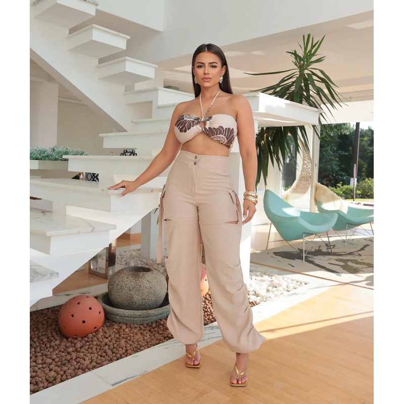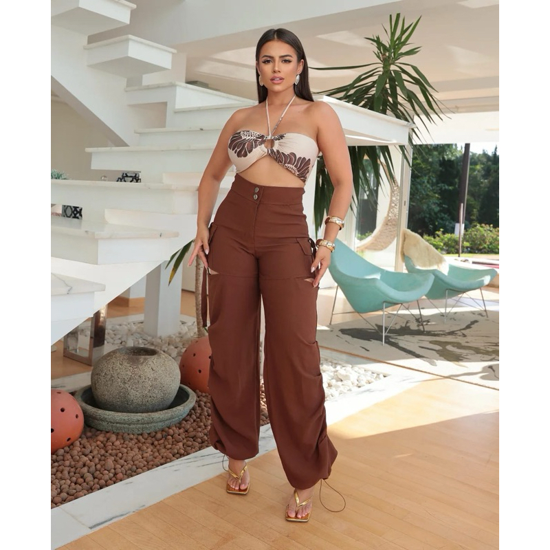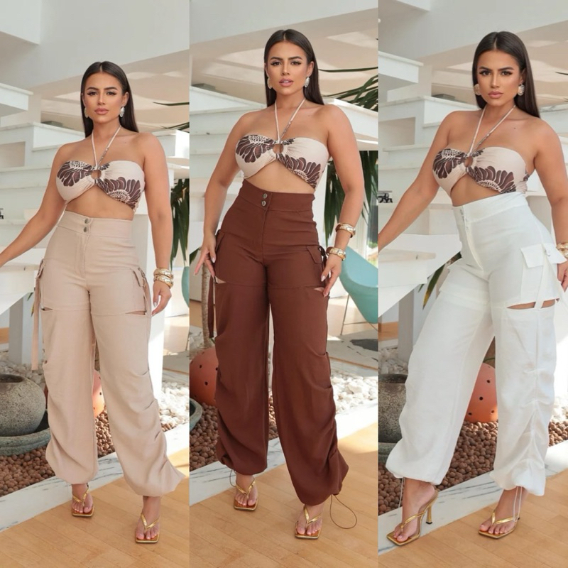 Calça Cargo Parachute Drapeada Sensorial Marrante Com Zíper e 2 Botões