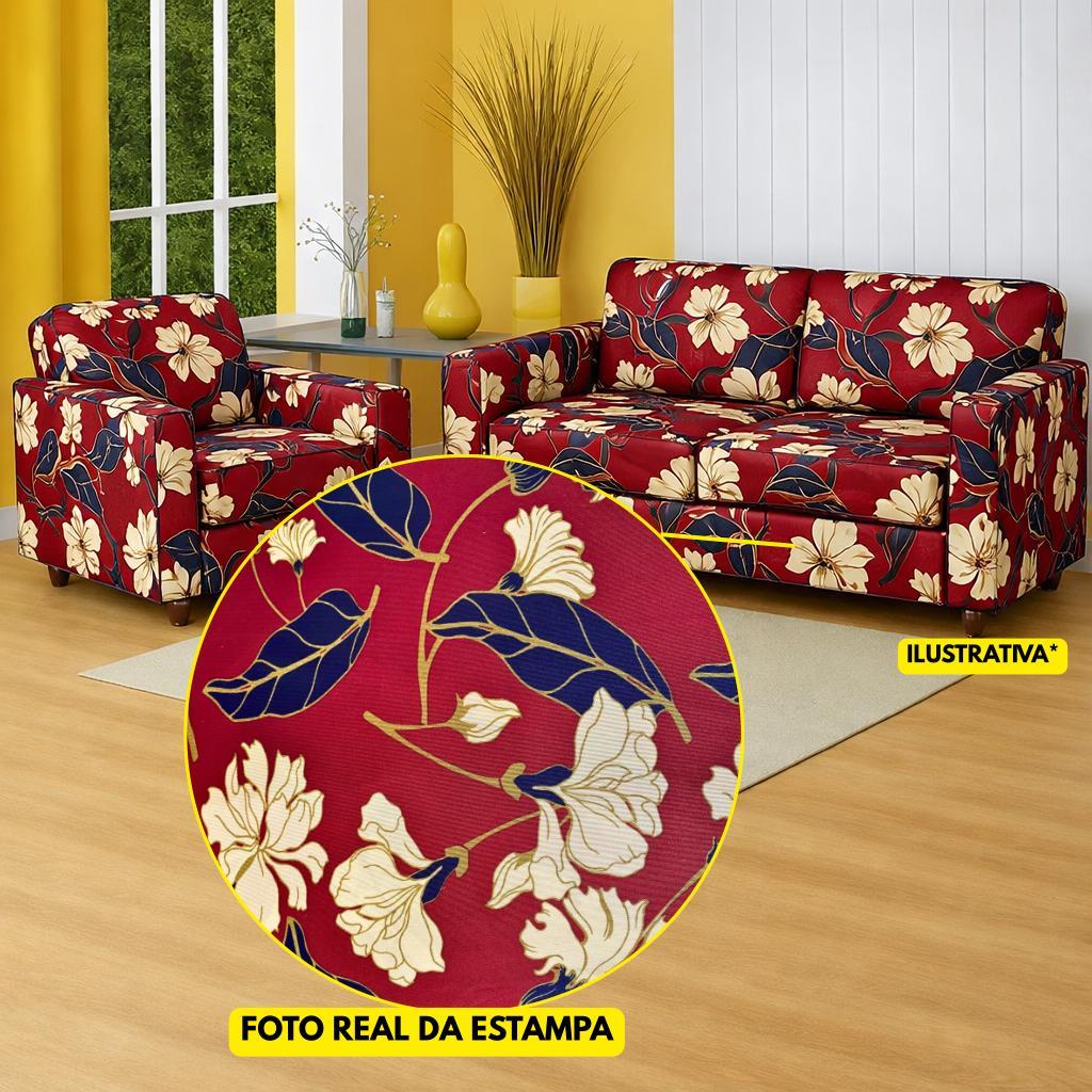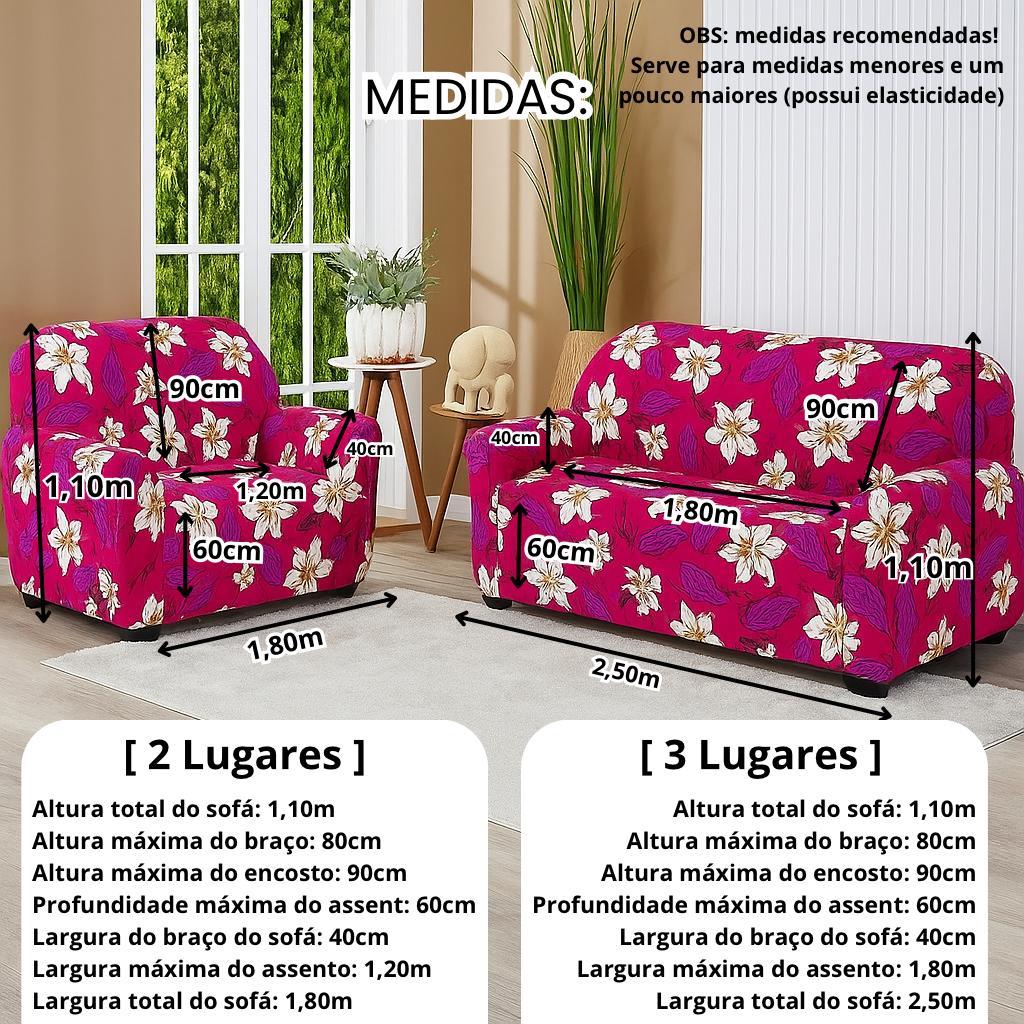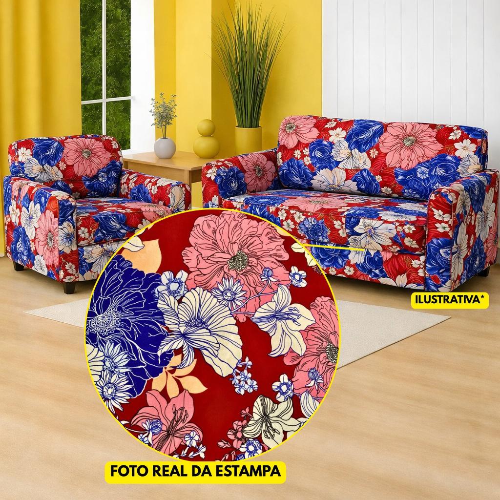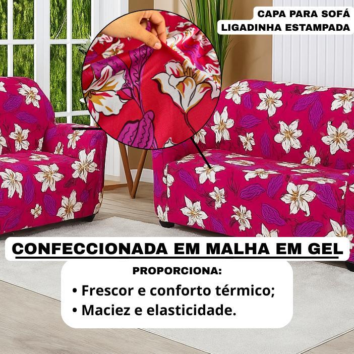 CAPA PARA SOFÁ 2 E 3 LUGARES ESTAMPADA LIGADINHA COLADINHA