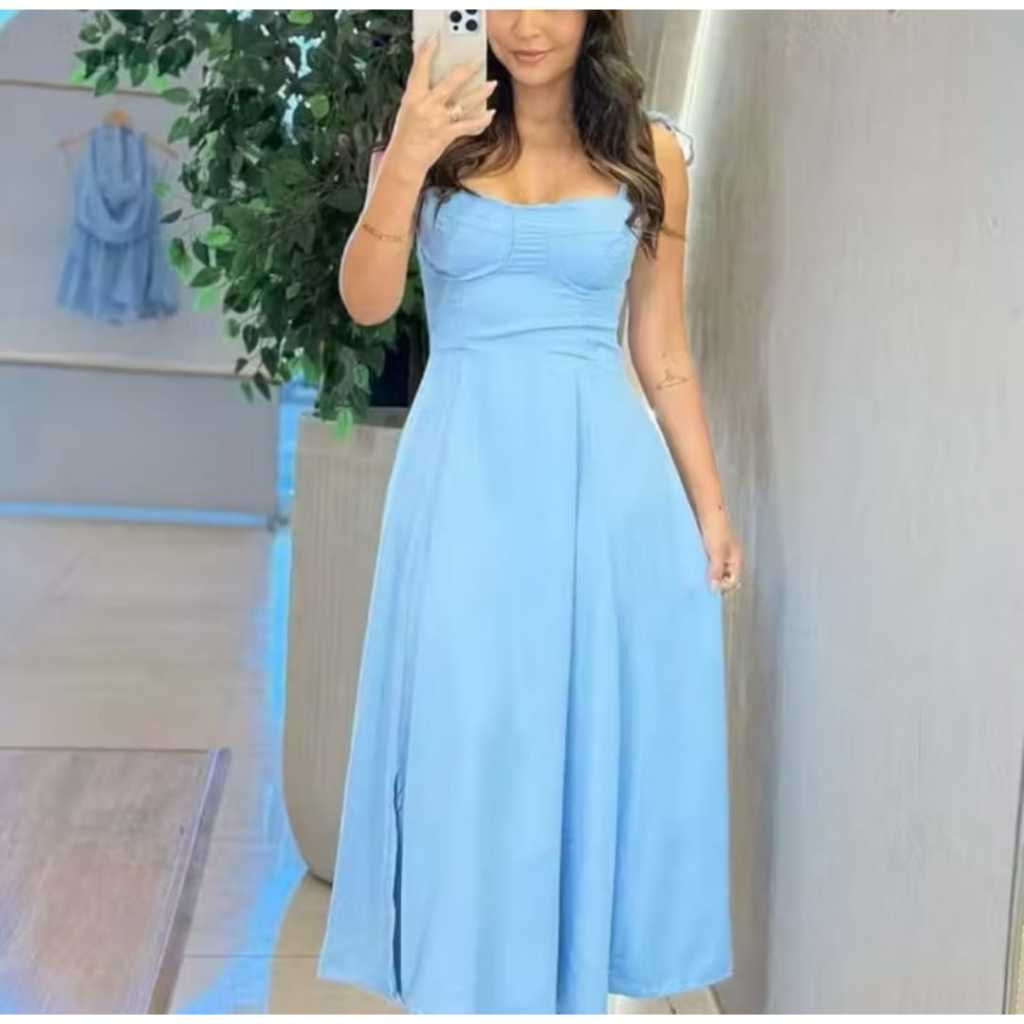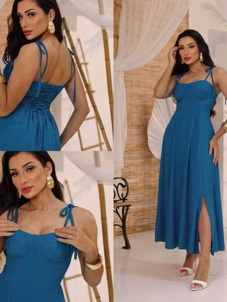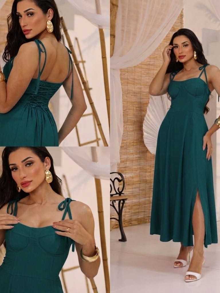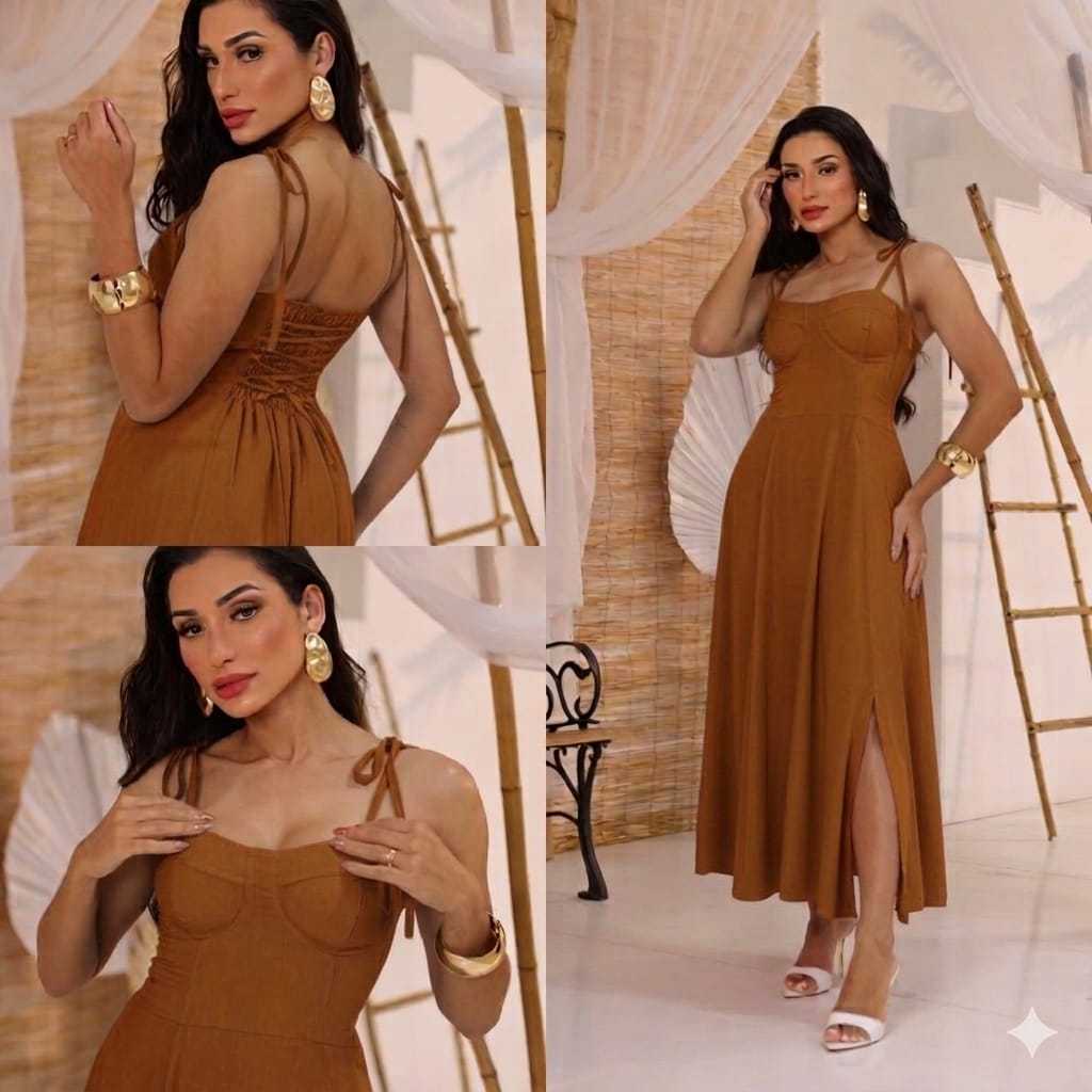 Vestido feminino Midi Romantico Camponesa Longo viscolinho – forro e bojo Elegância, Conforto