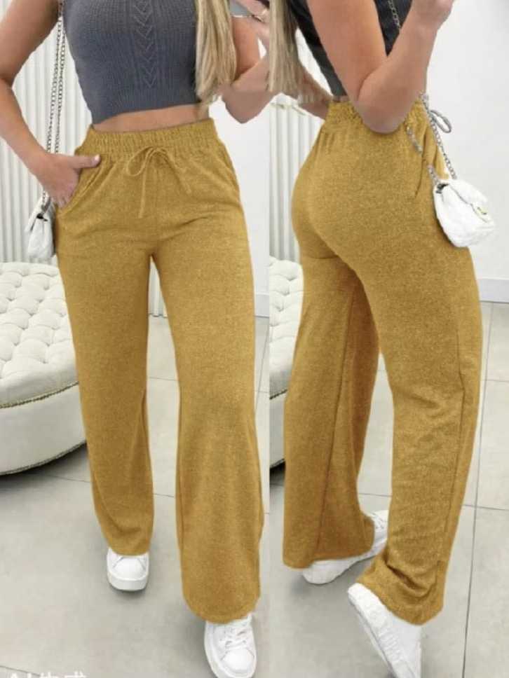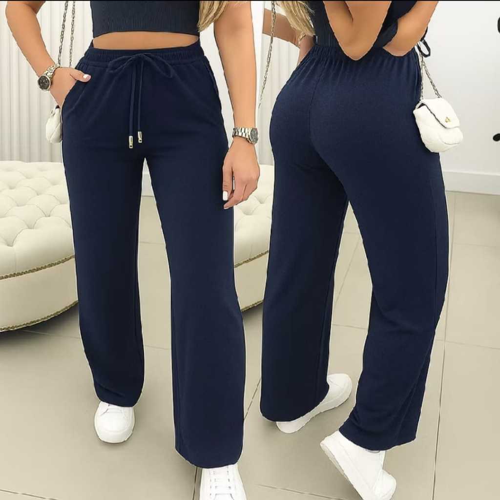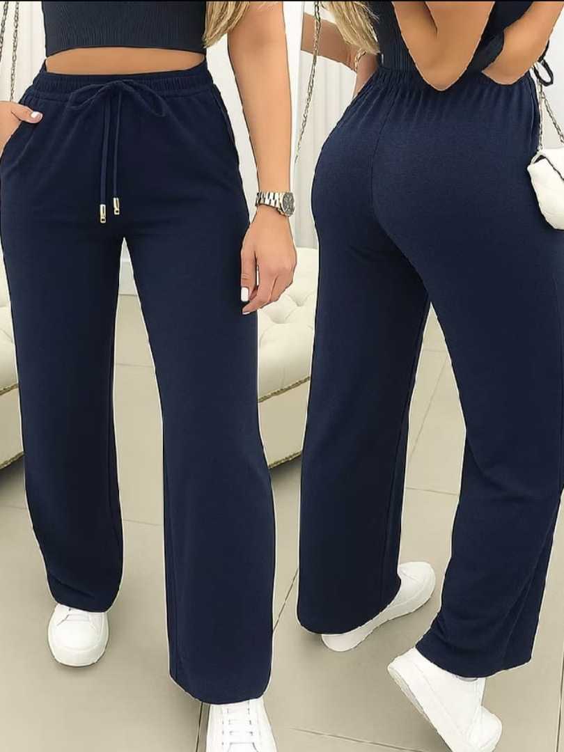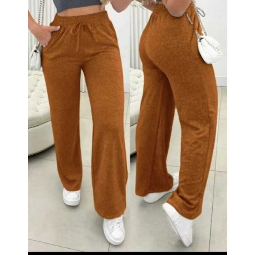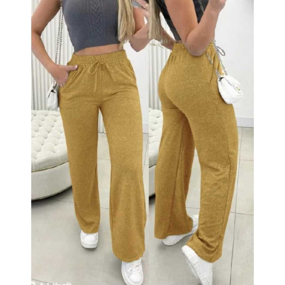Calça femenino pantalona de tecido lanzinha cintura alta com bolso pra inverno