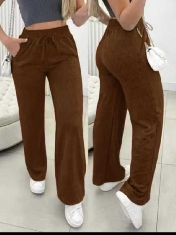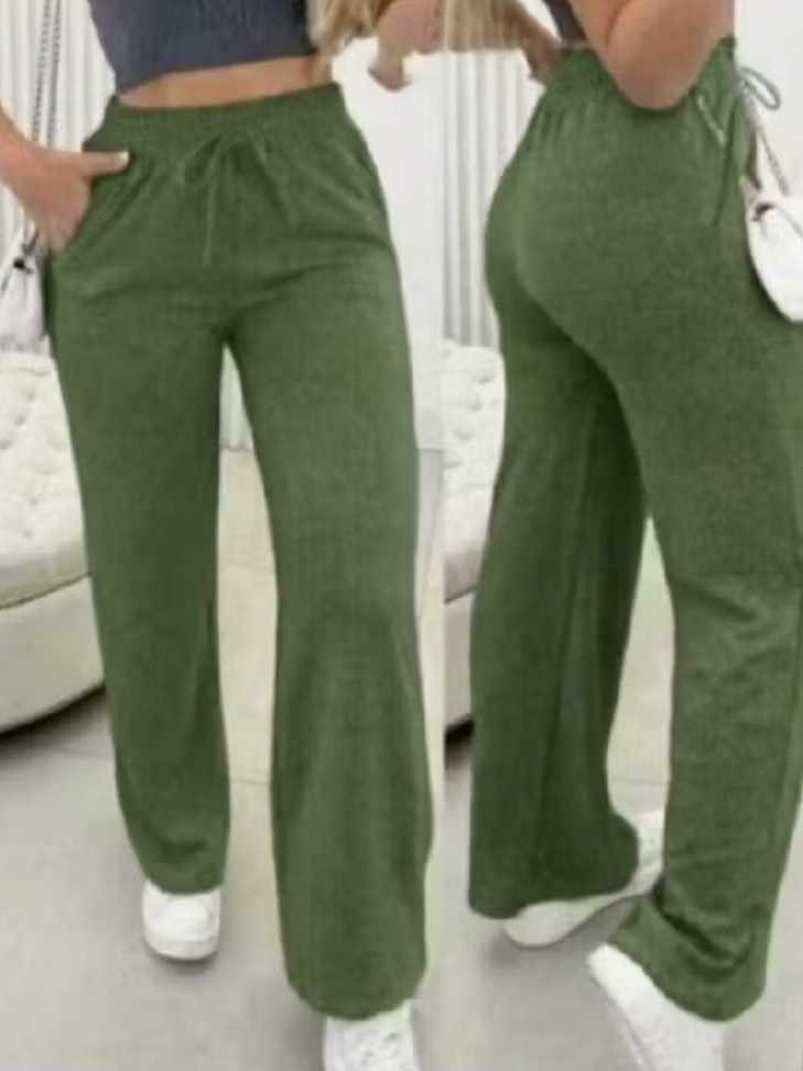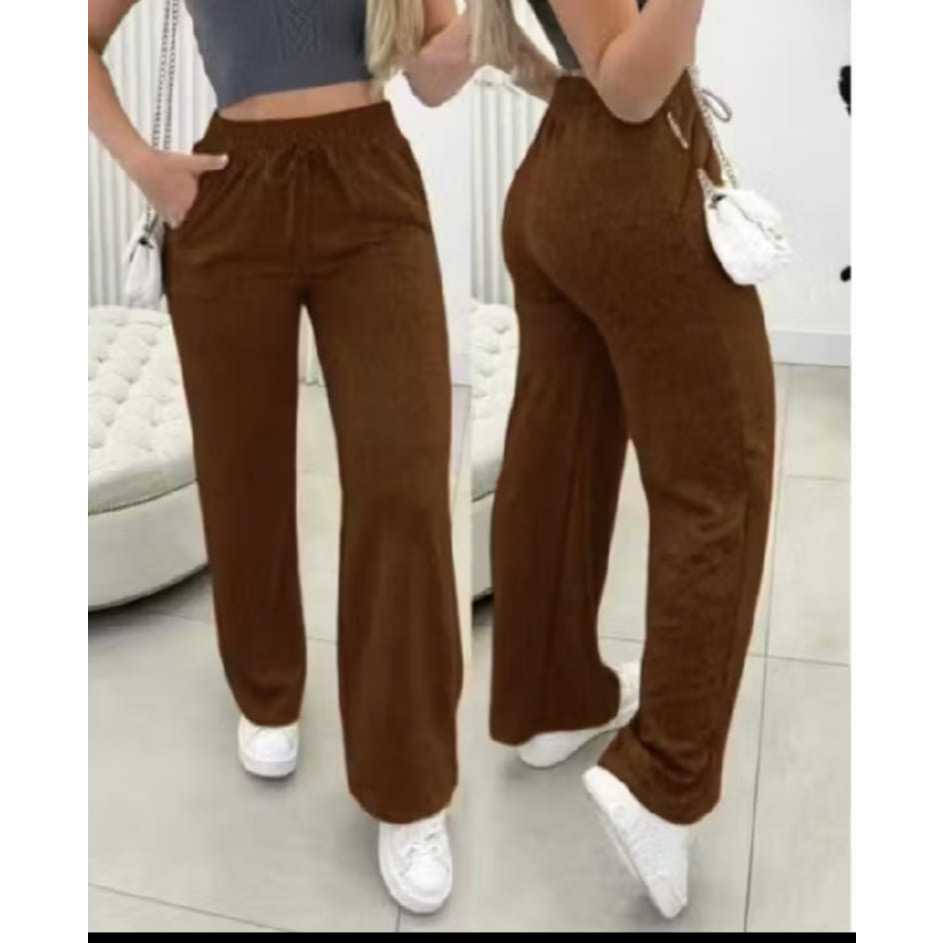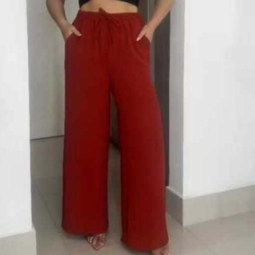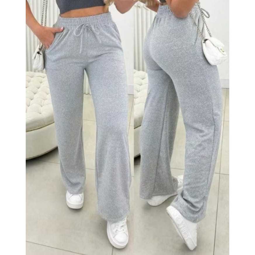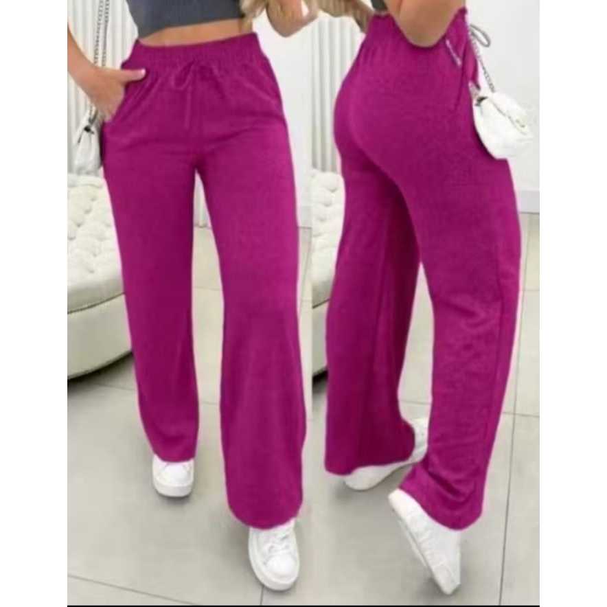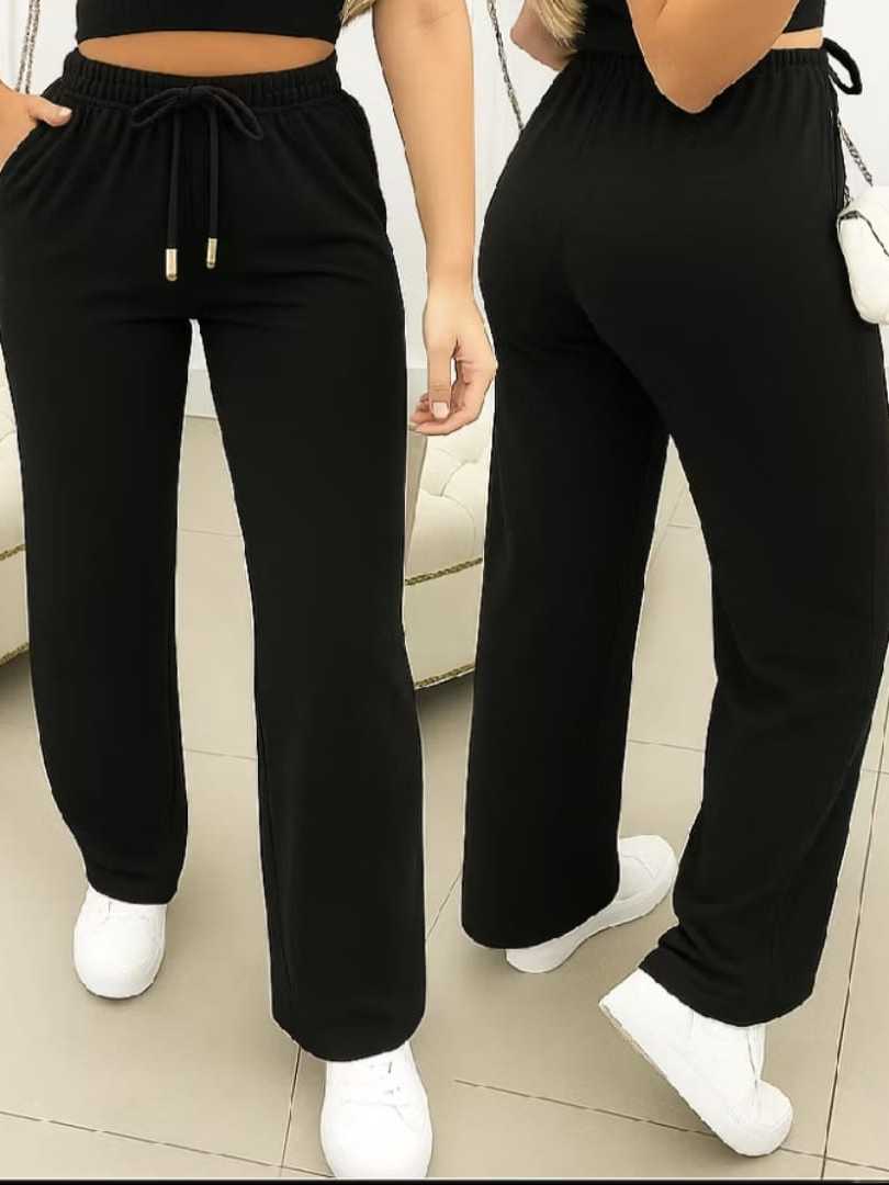 Calça femenino pantalona de tecido lanzinha cintura alta com bolso pra inverno