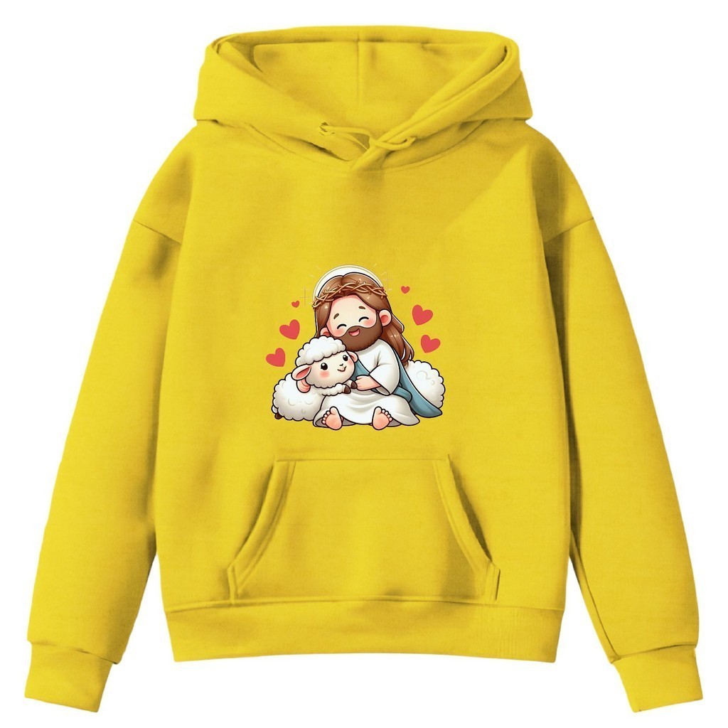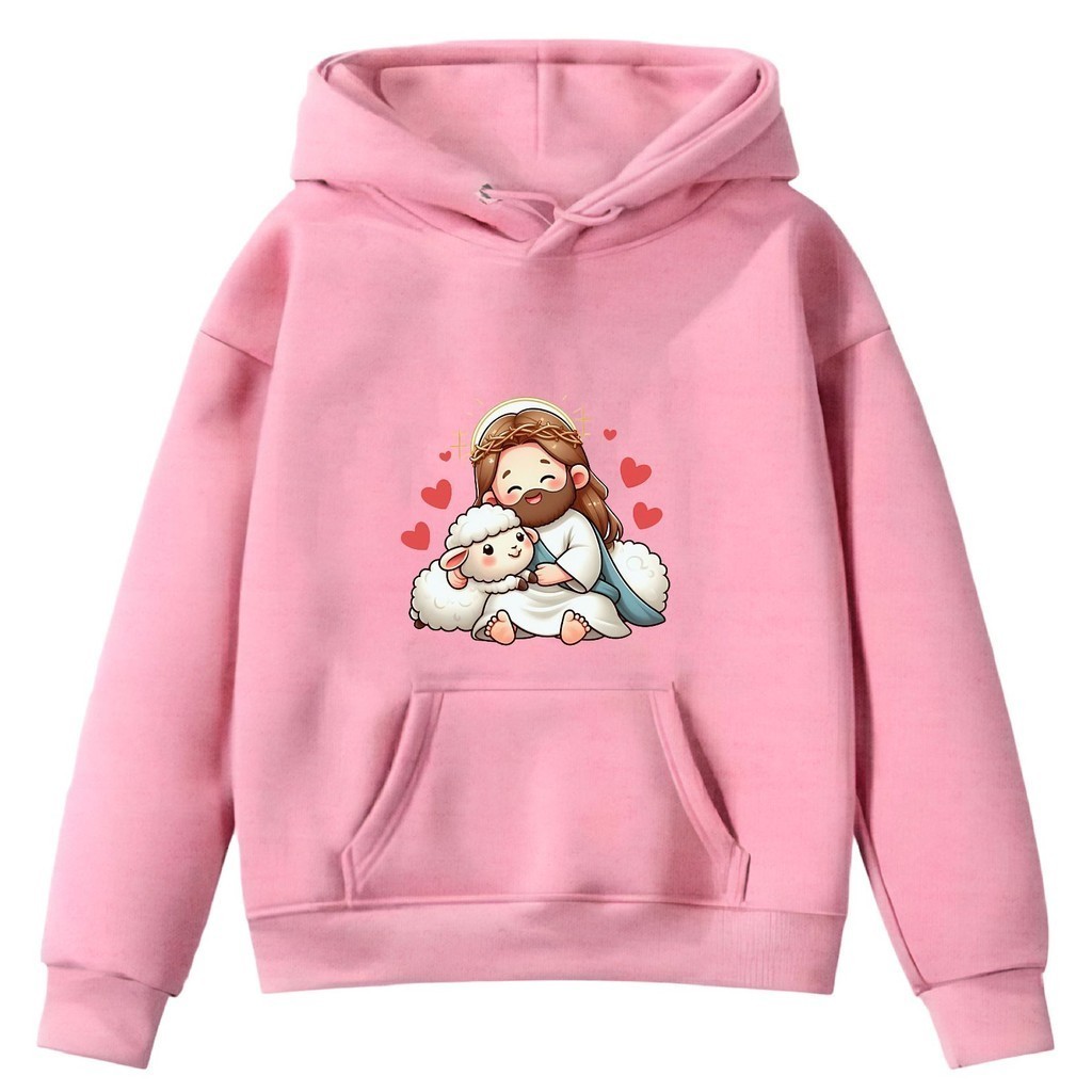 Blusa Moletom Flanelado Infantil Jesus Pastor de Ovelhas Religioso Católico Fé Infância Diversão