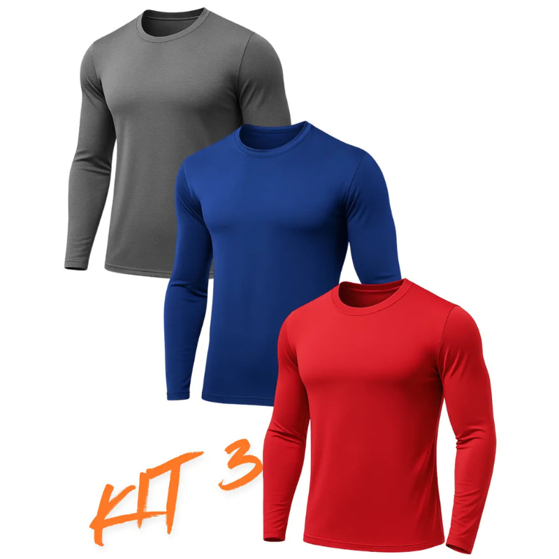 Kit 3 Camisa Térmica Proteção Uv 50+ Segunda Pele Camiseta Blusa Malha Fria Academia Manga Longa