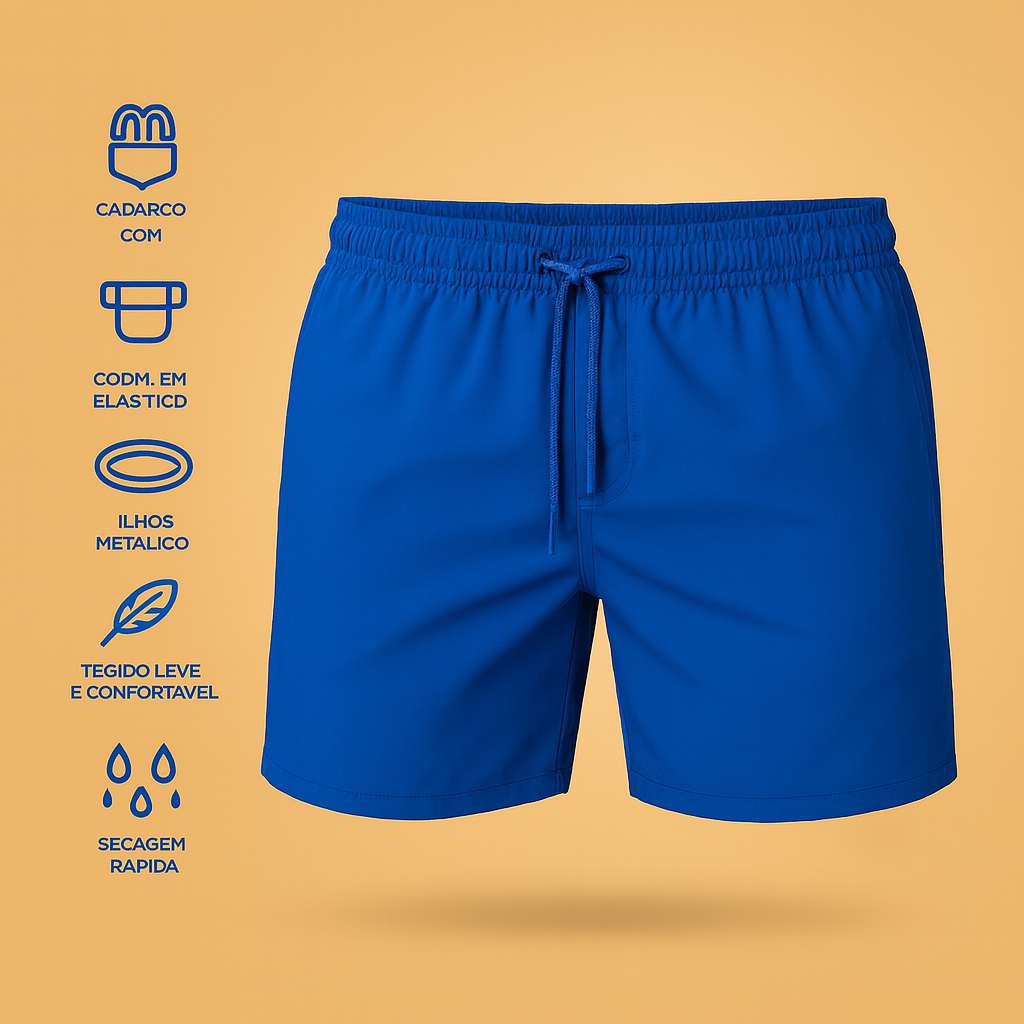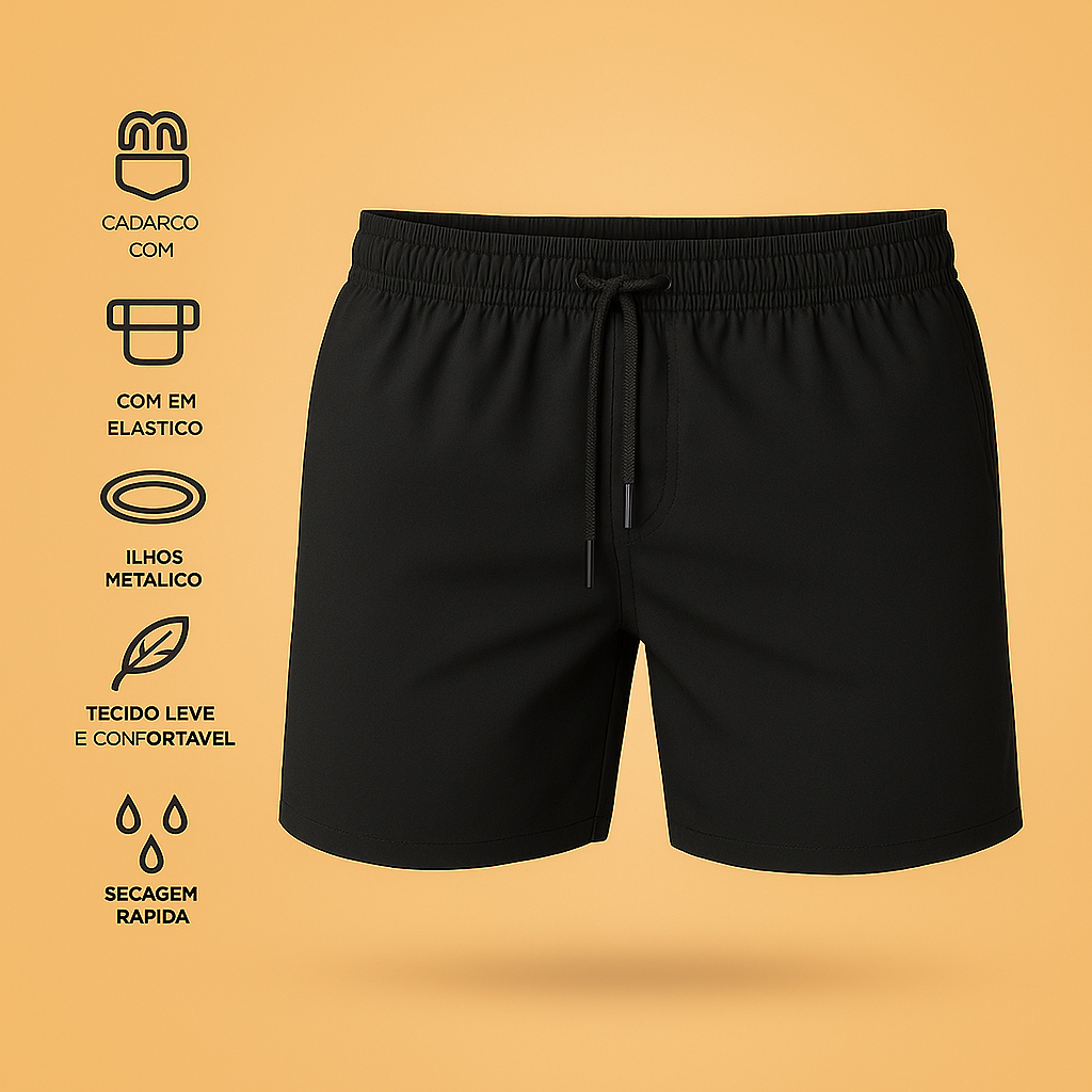 Shorts Masculino Elastano Dry-Fit Com Bolso Amarração Academia Praia Casual