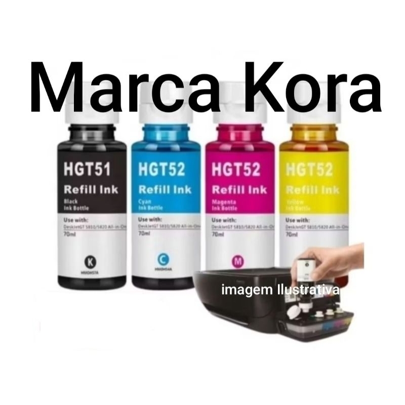 Kit 4 Refil De Tinta Original Kora Gt53 Gt52 Para Impressora Hp Gt5822 Hp Gt5810 Hp Gt5820 HP 410 416 412 316 116