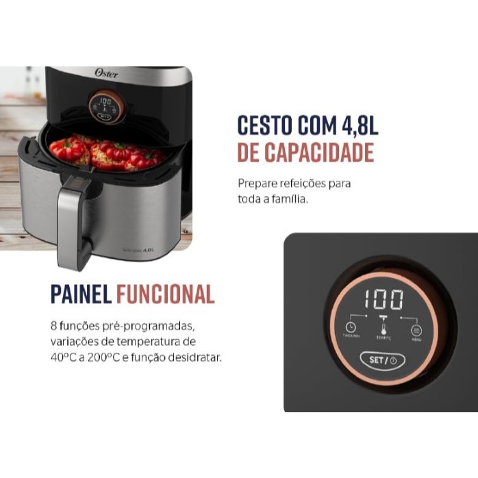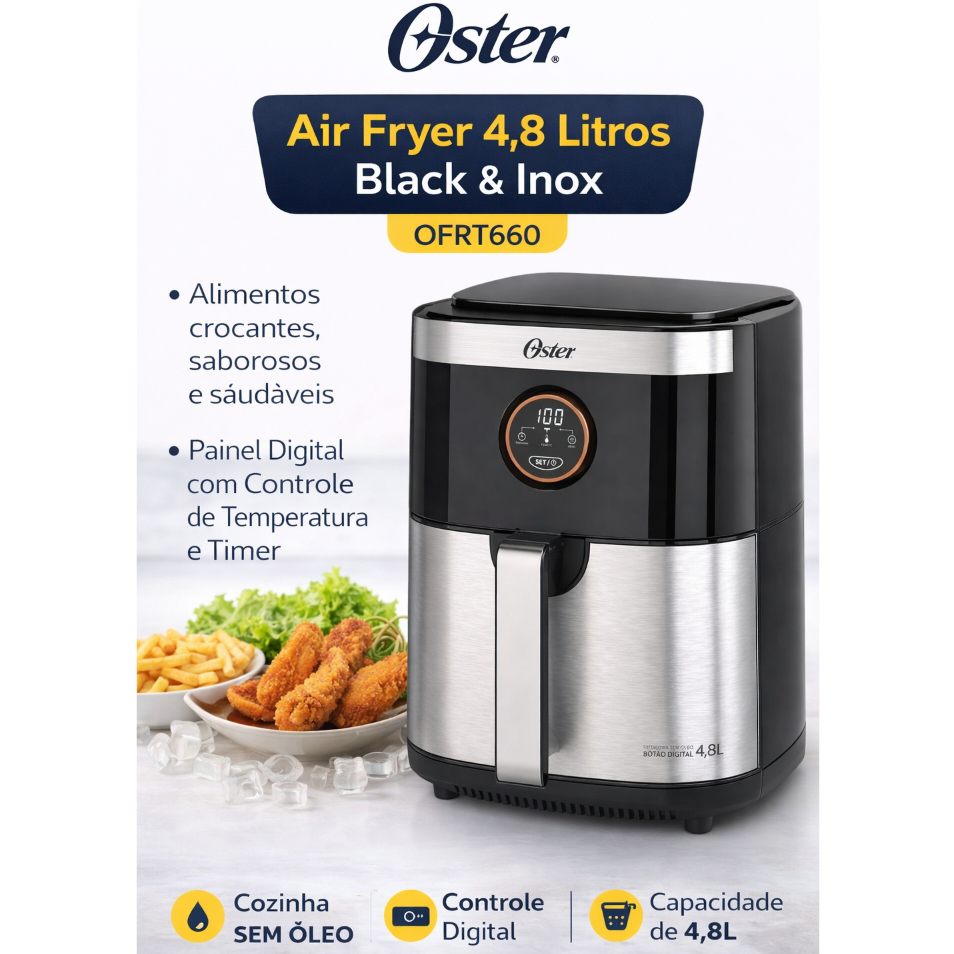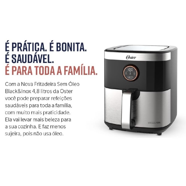 Air Fryer 4,8 Litros Oster Black&Inox Fritadeira Elétrica Sem Óleo OFRT660