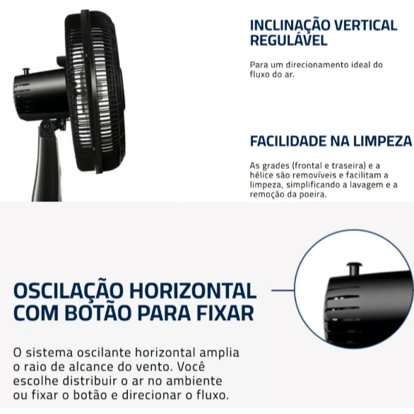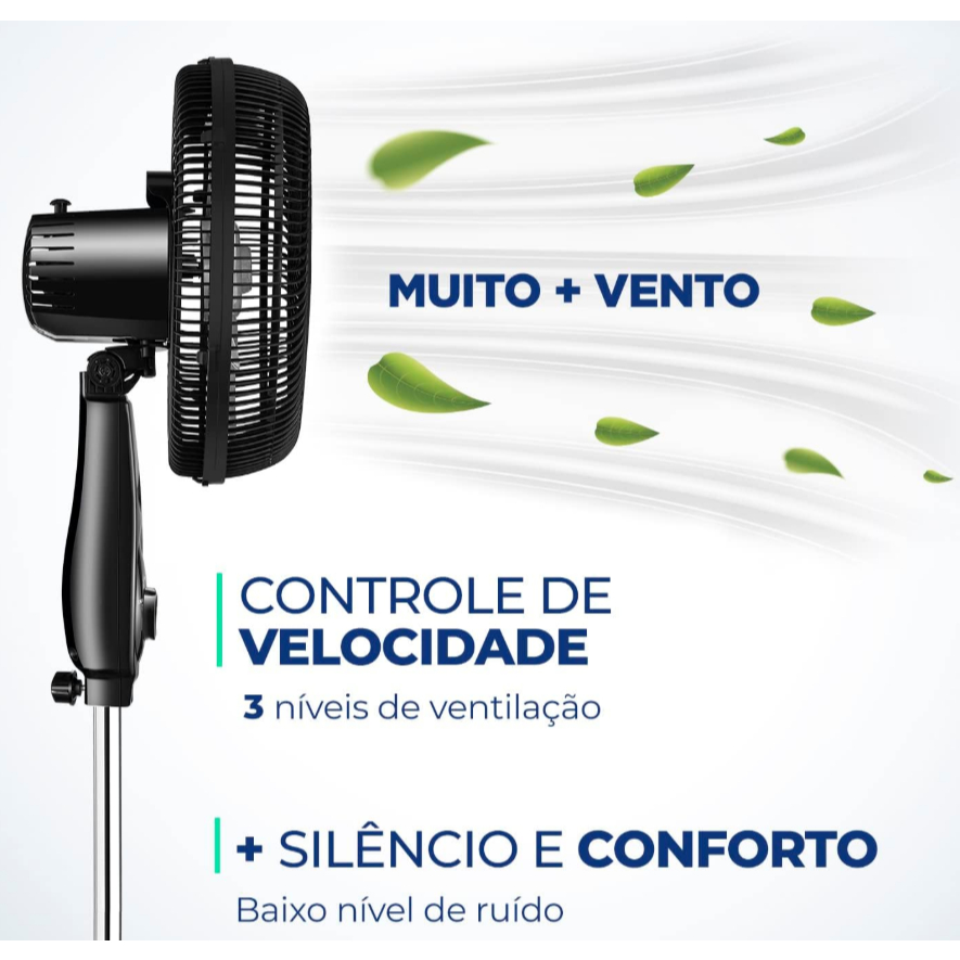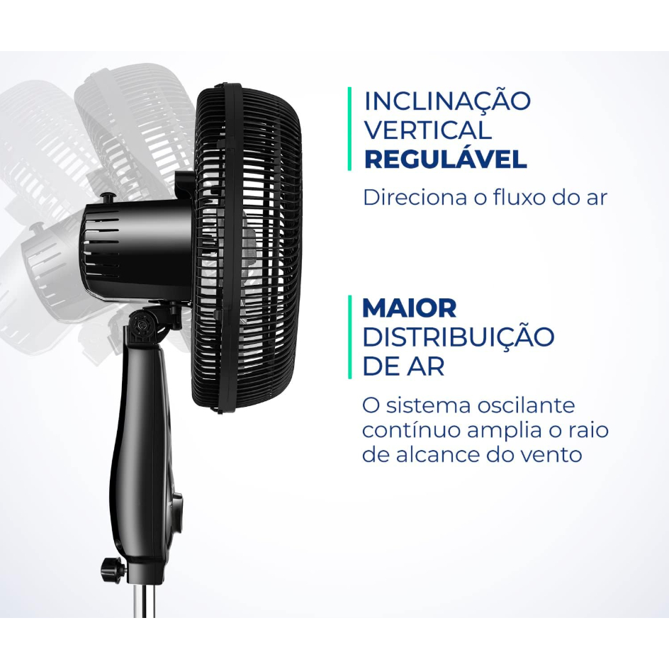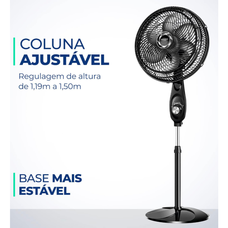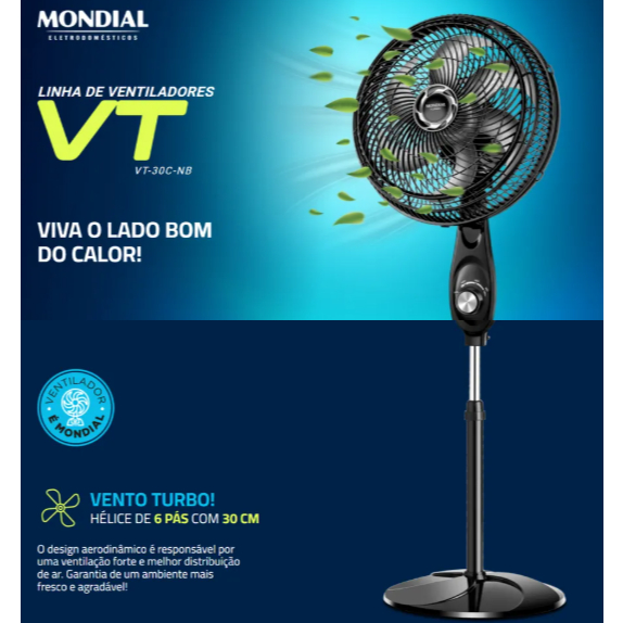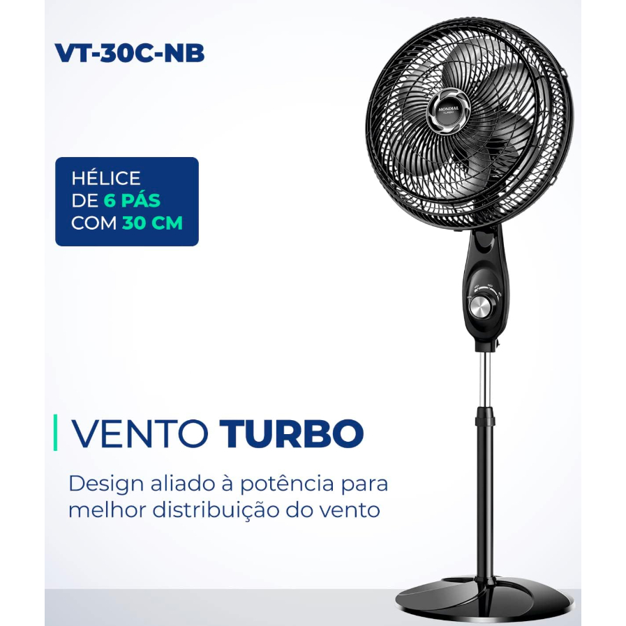 Ventilador de Coluna 30cm Turbo Mondial VT-30C-NB Silencioso 6 Pás 60Hz Preto Altura Ajustavel