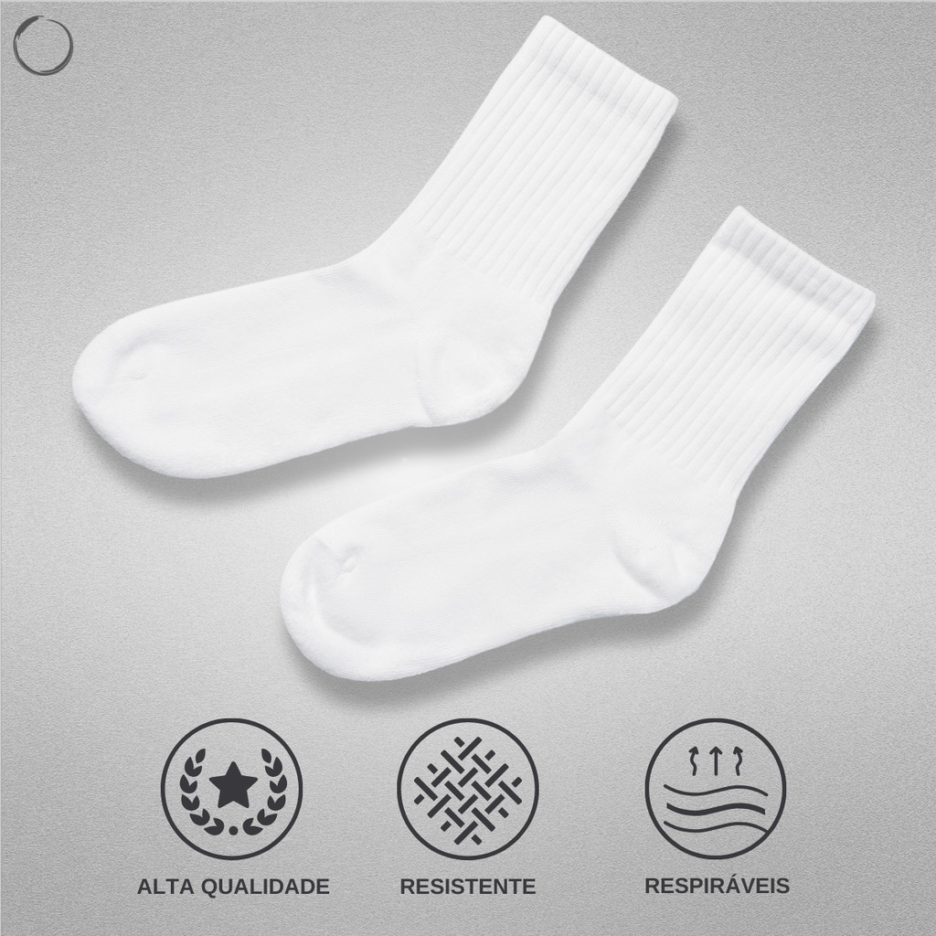 Kit Pares de Meia Cano Alto Branca Masculina Respirável Esportiva