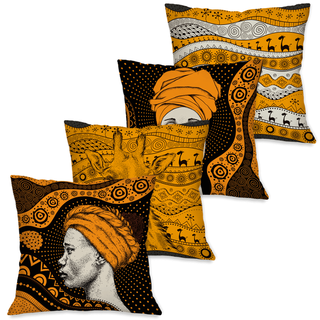 KIT 4 CAPAS DE ALMOFADA MODERNA AFRICA 45X45 TRADICIONAL