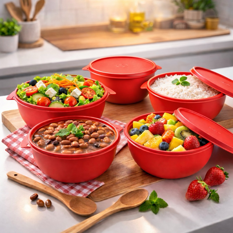 Kit 5 Potes Redondos com Tampa Hermética 1000ml | Bowls Plástico Resistente