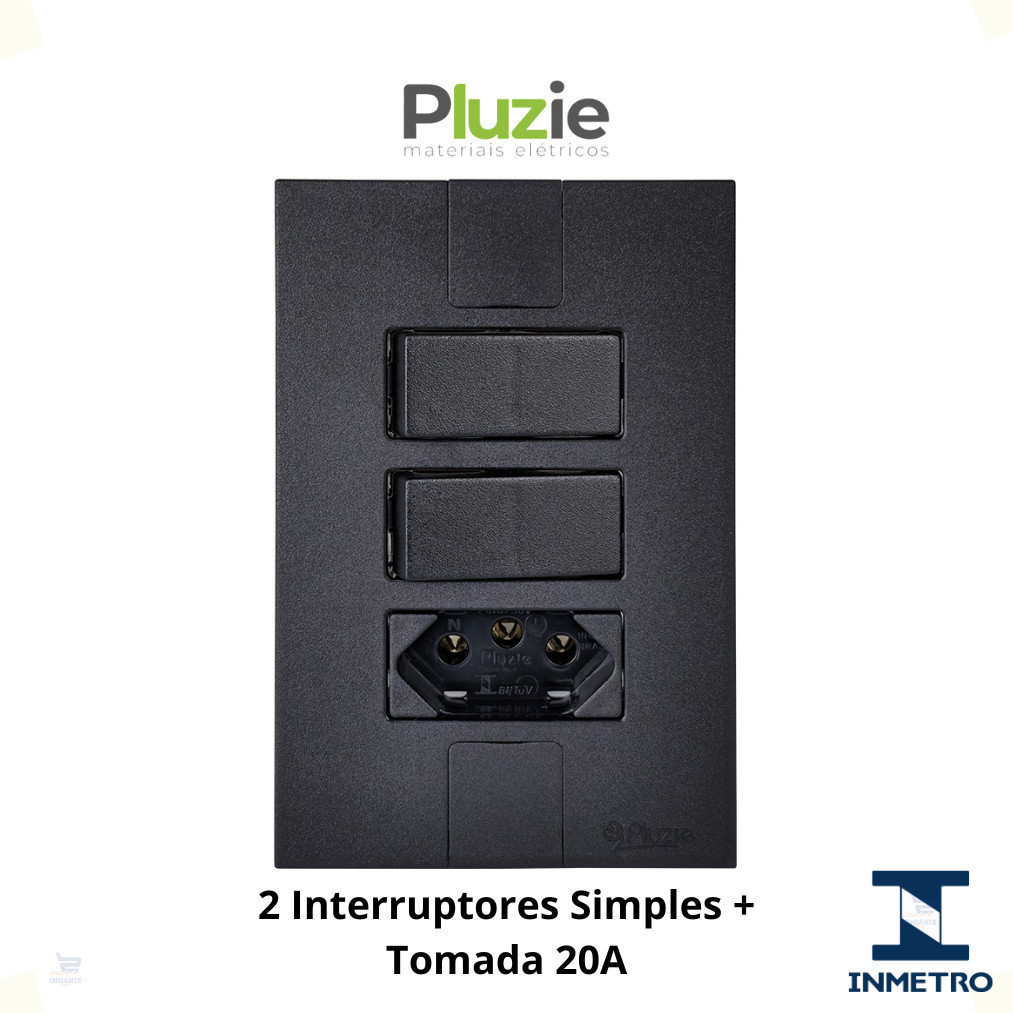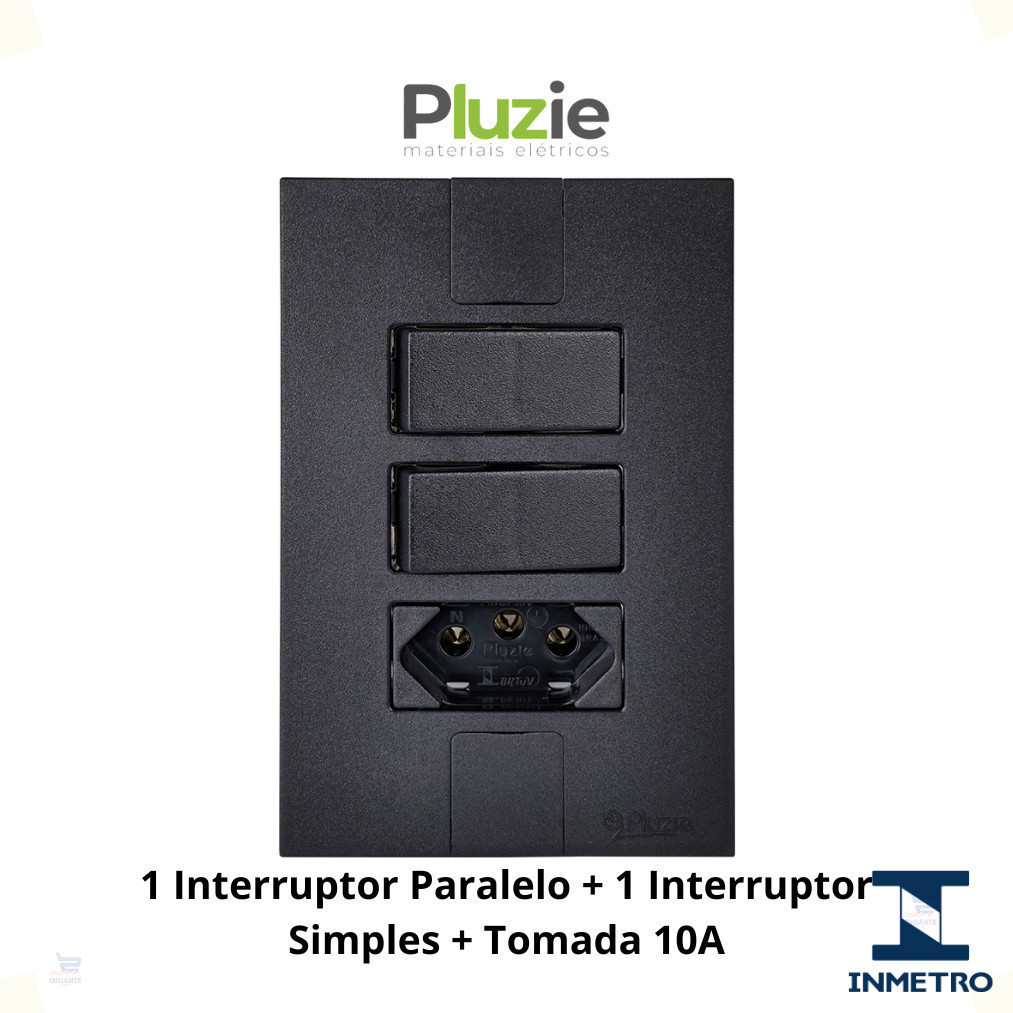 Tomada Interruptor Preto Fosco Linha Caprice Pluzie