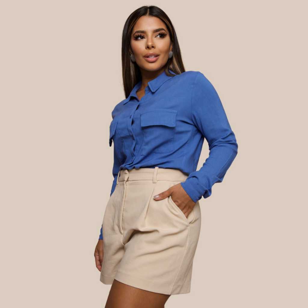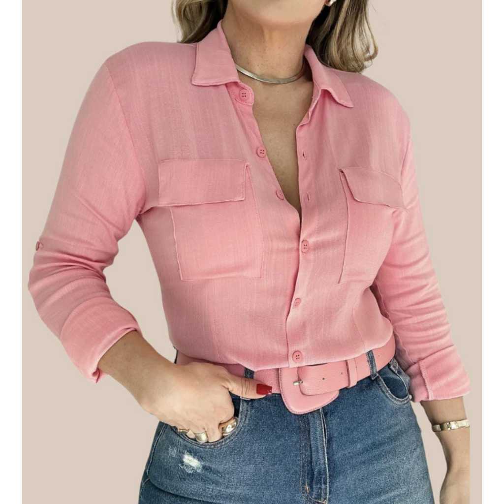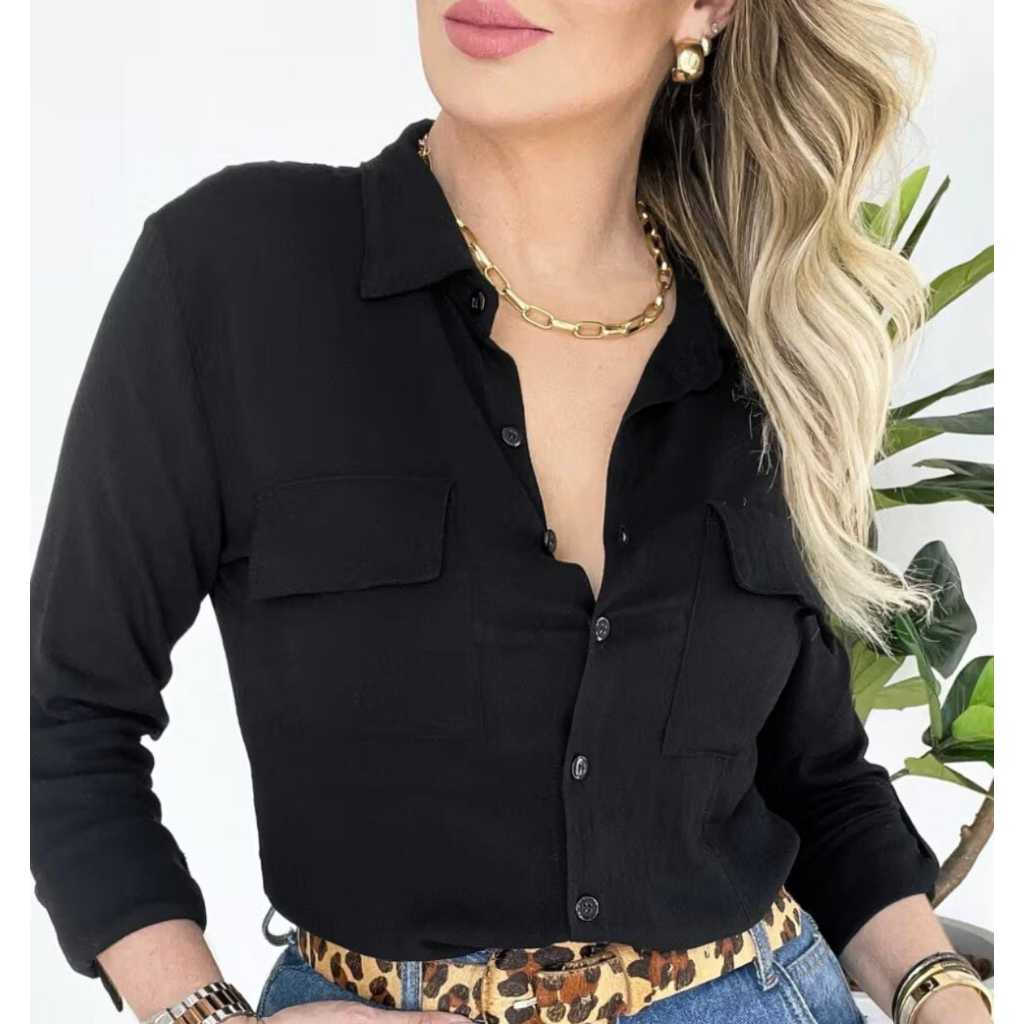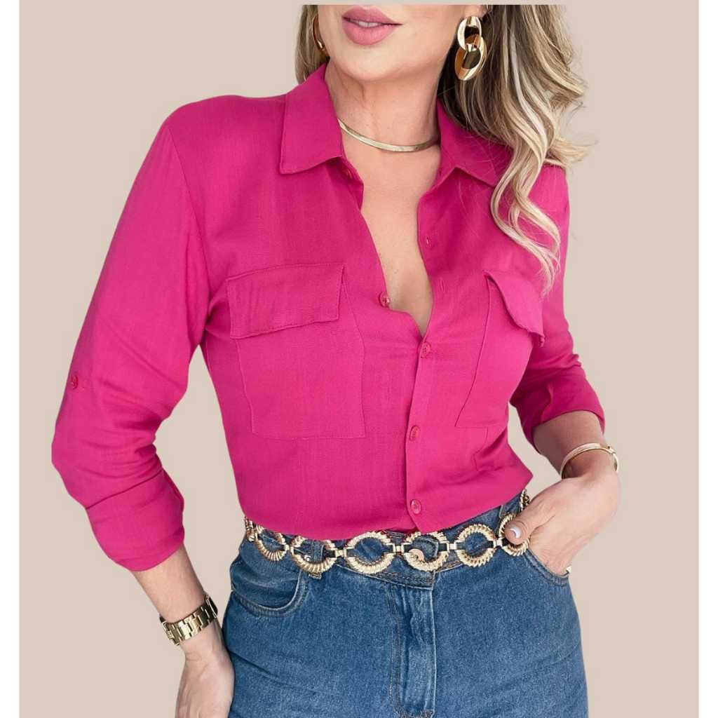 Camisa Feminina Manga Longa Viscolinho Modelo Slim Camisete Social Trabalho Casual Elegante
