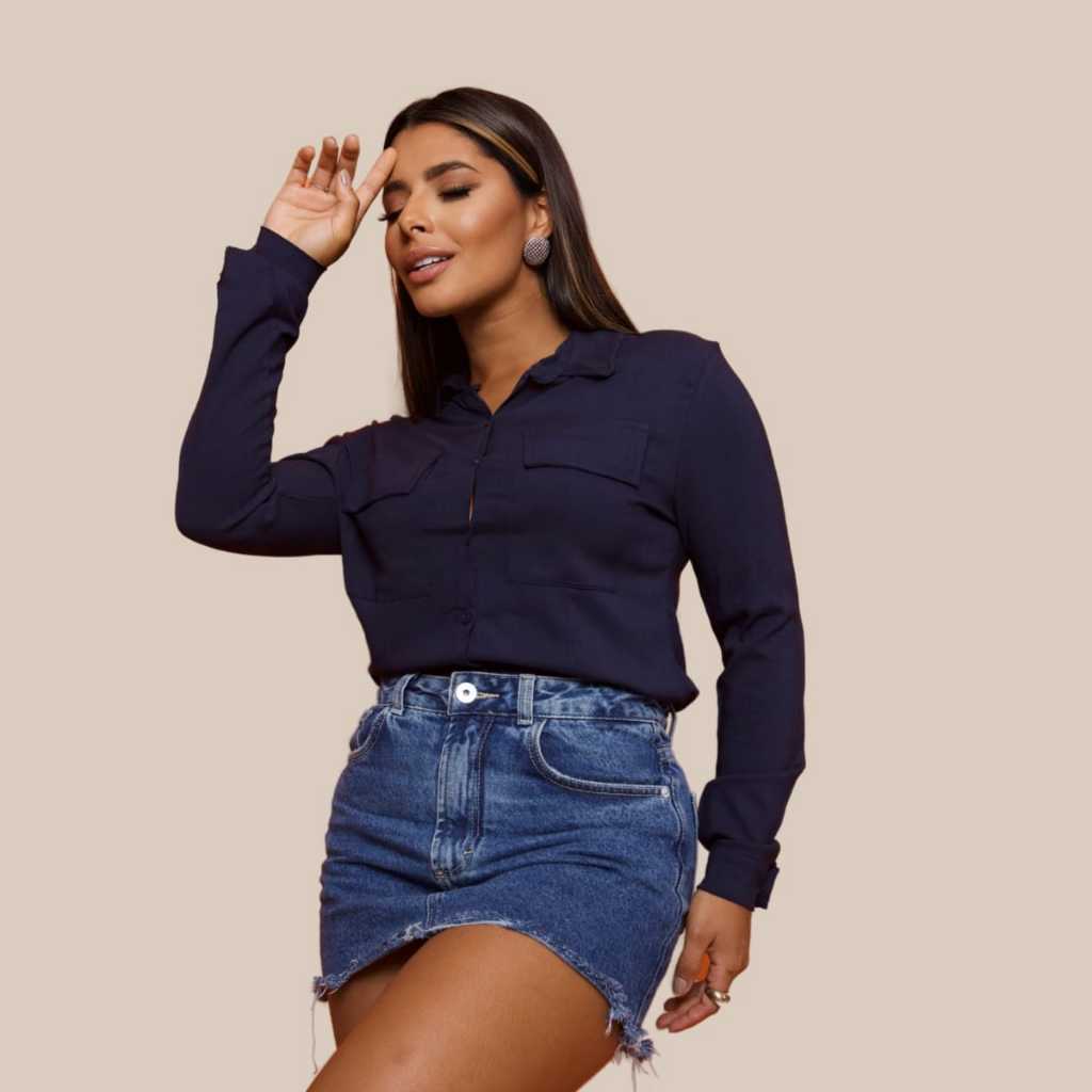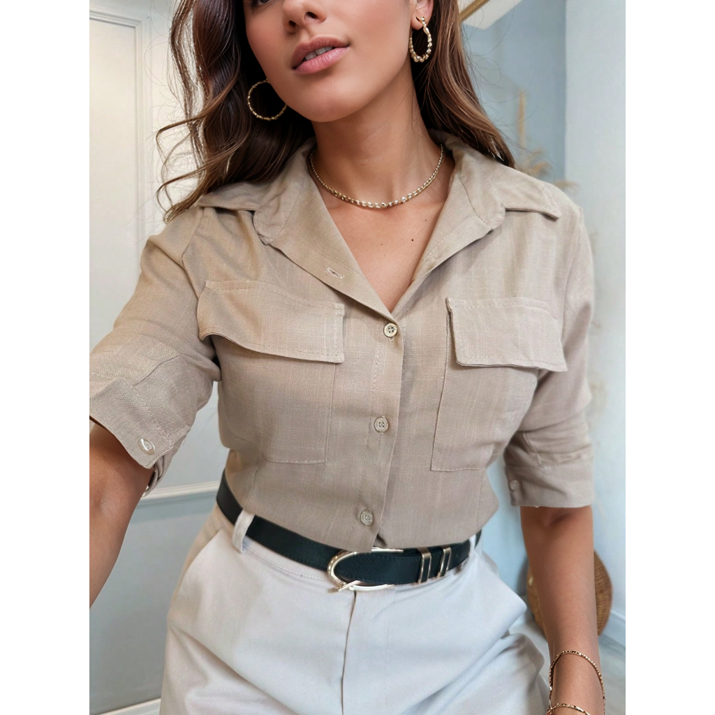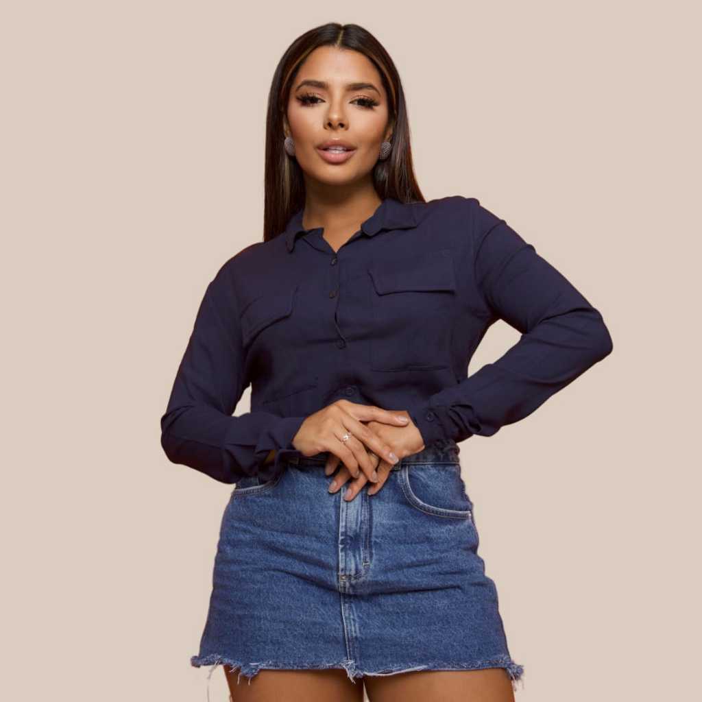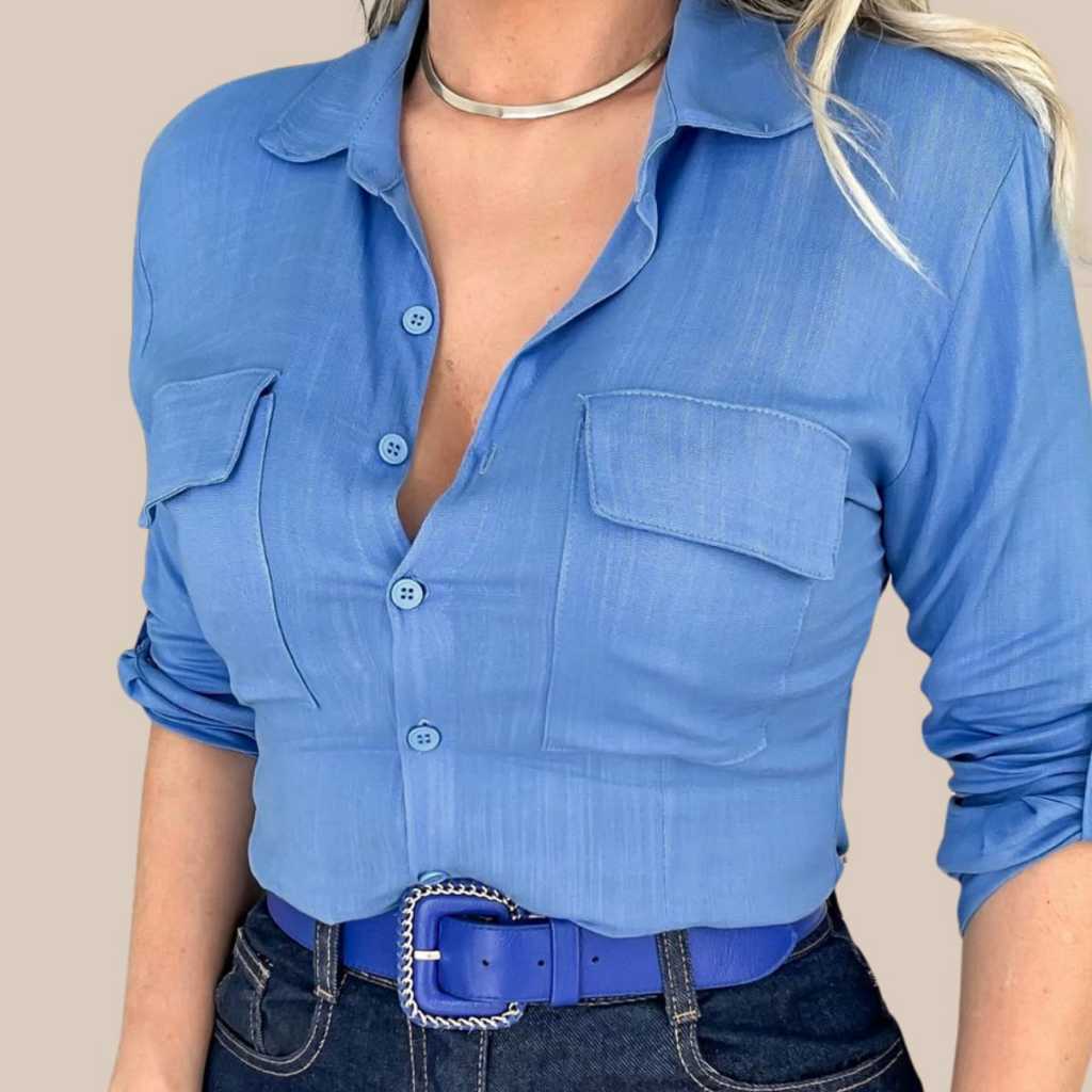 Camisa Feminina Manga Longa Viscolinho Modelo Slim Camisete Social Trabalho Casual Elegante