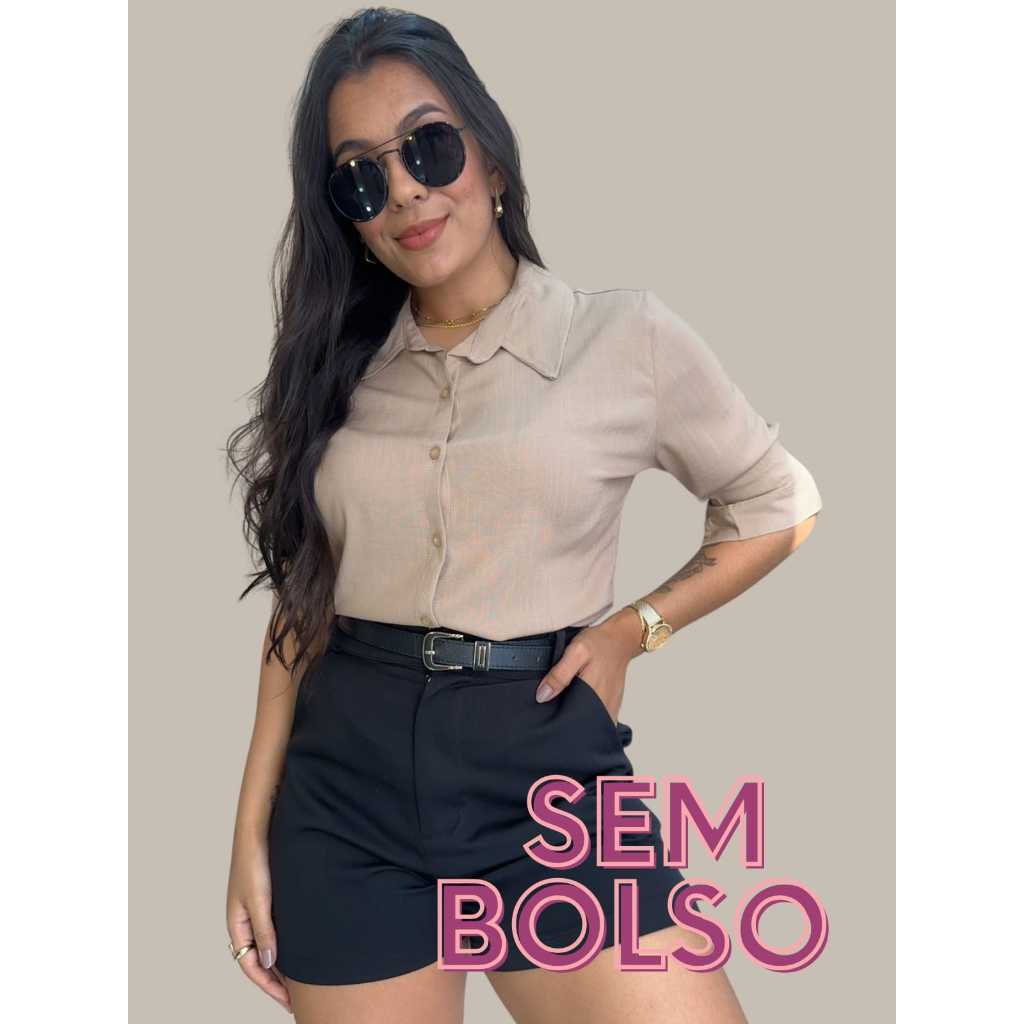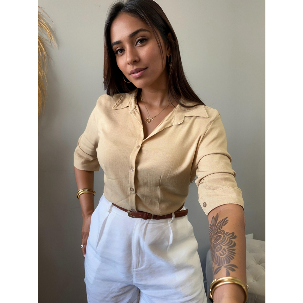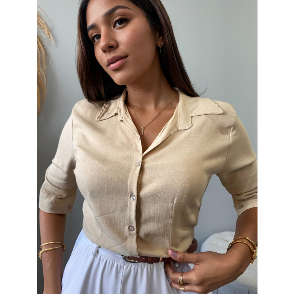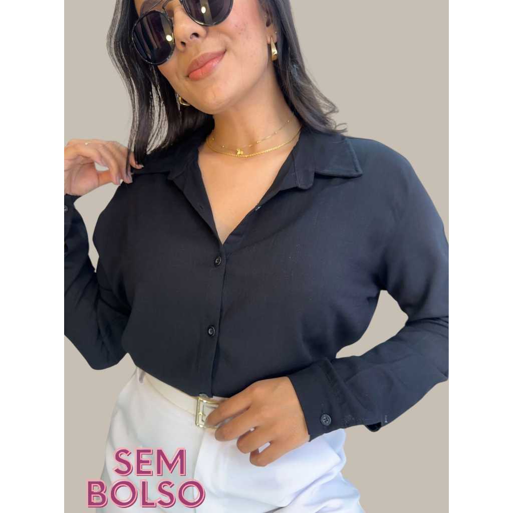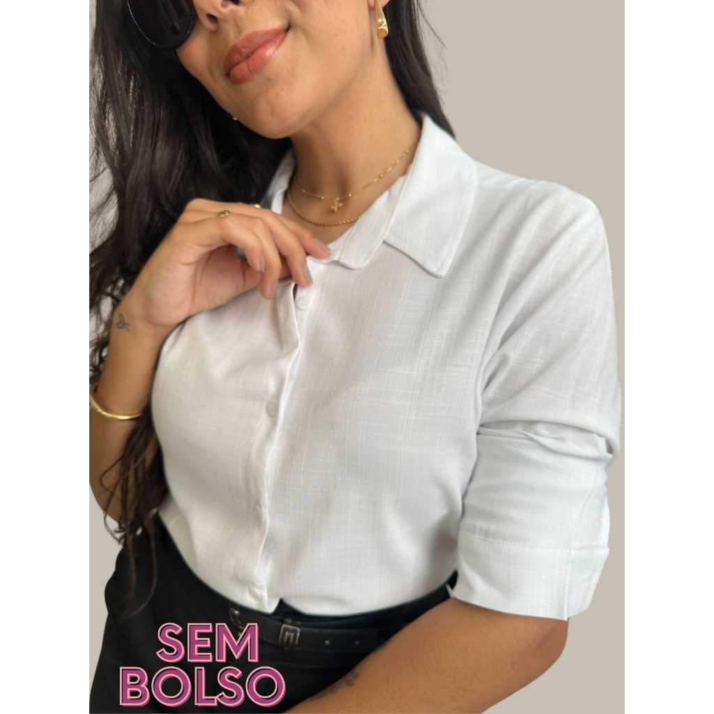 Camisa Viscolinho Com Elastano Feminina Social Basica Camisete Elegante MAnga Longa