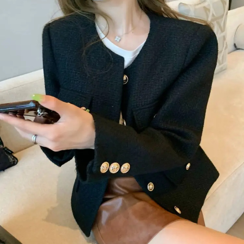 Mulheres Blazer Jaqueta Curta Tweed Manga Longa Magro Solto Primavera Outono Inverno Moda Casual Elegante Formal Escritó