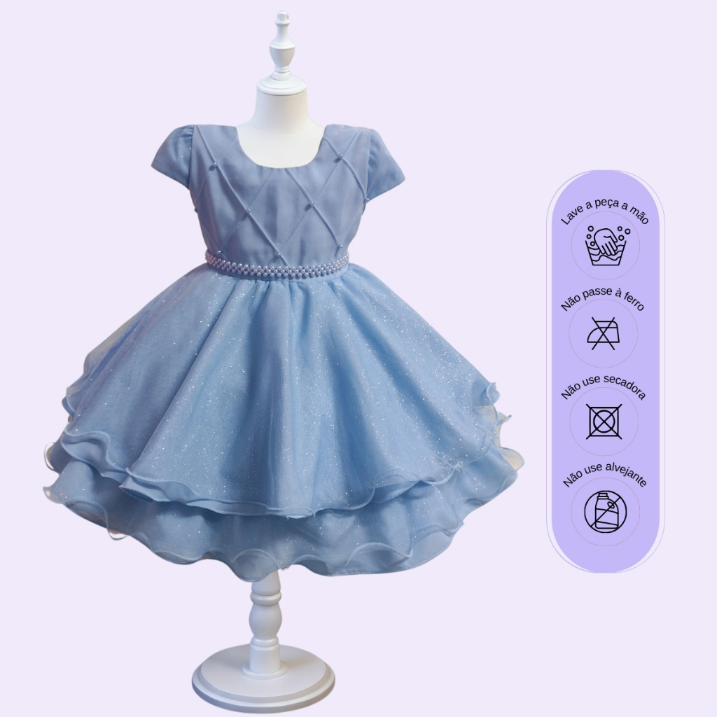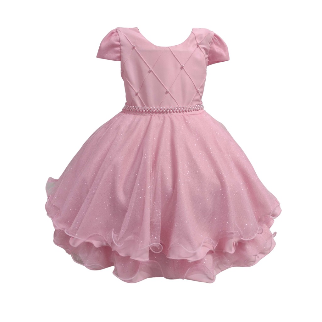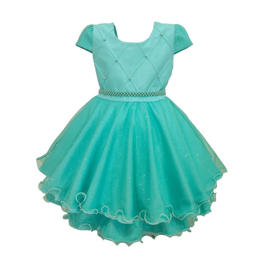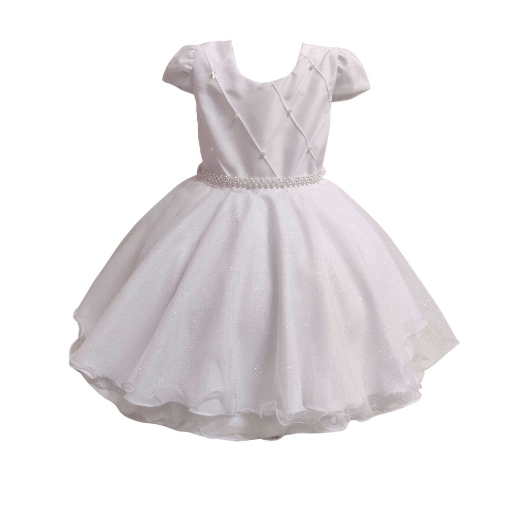Vestido Infantil Juvenil Princesa Curto Pérola Festa Luxo Saia De Brilho