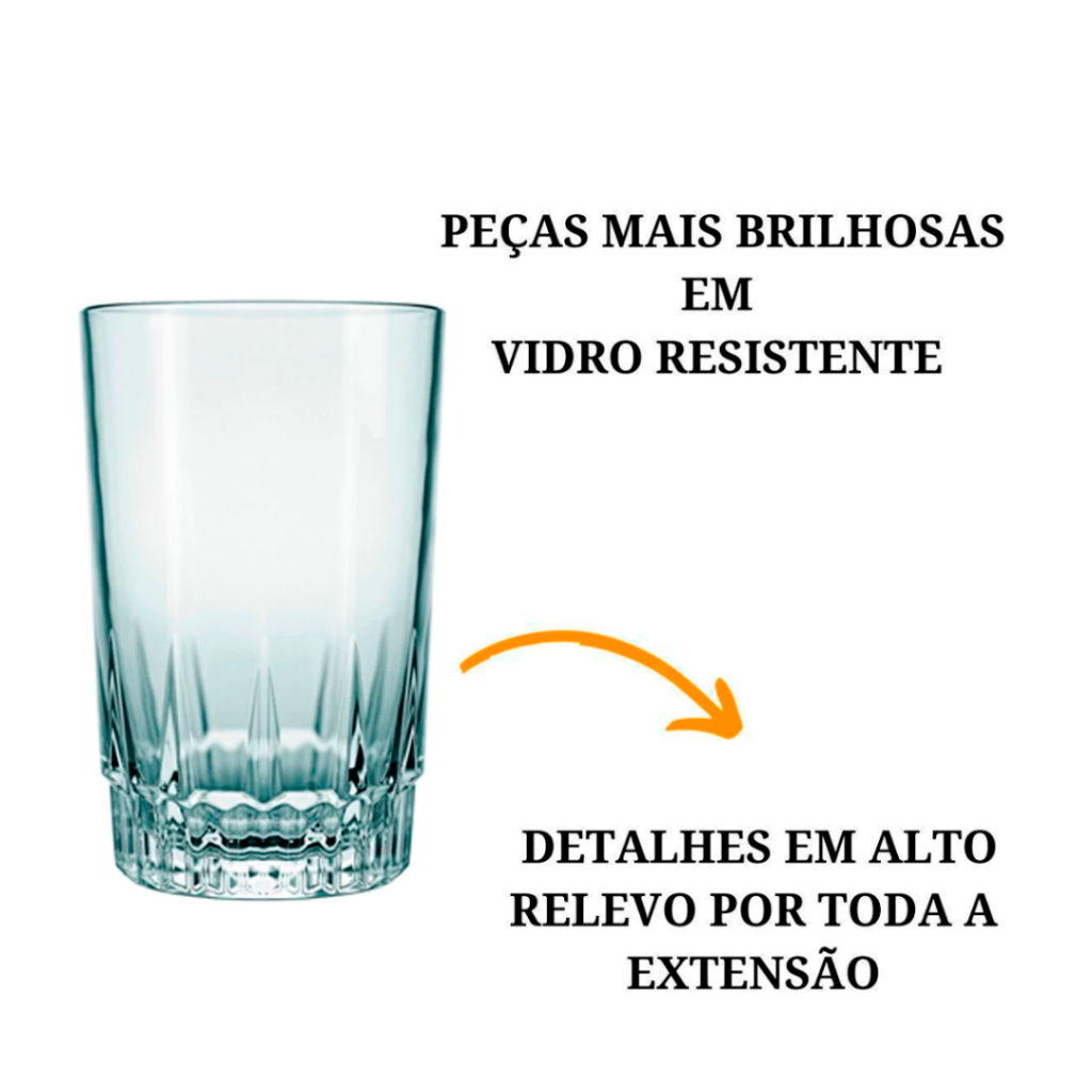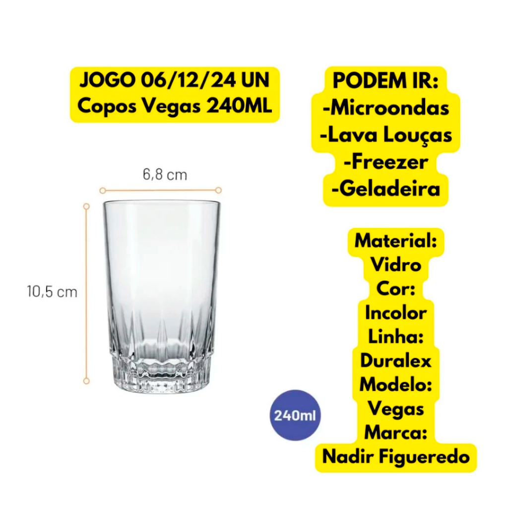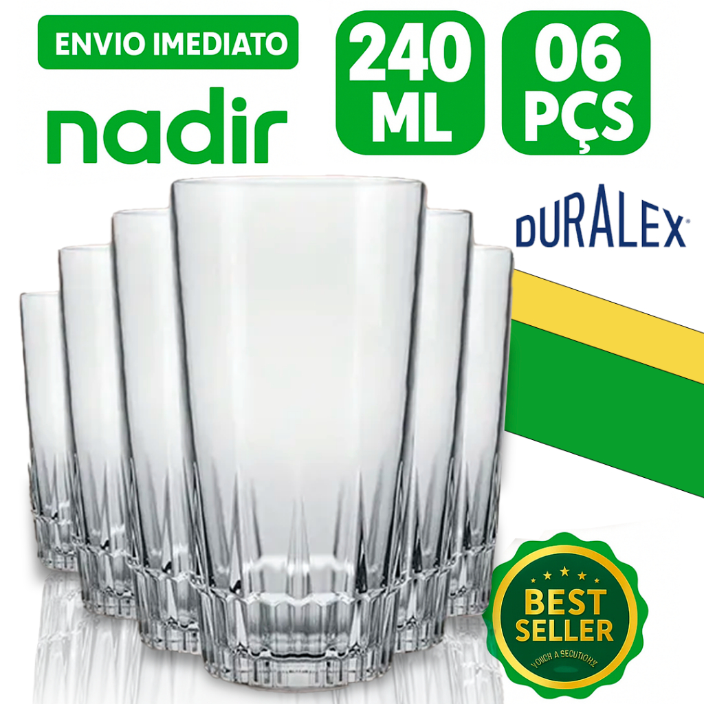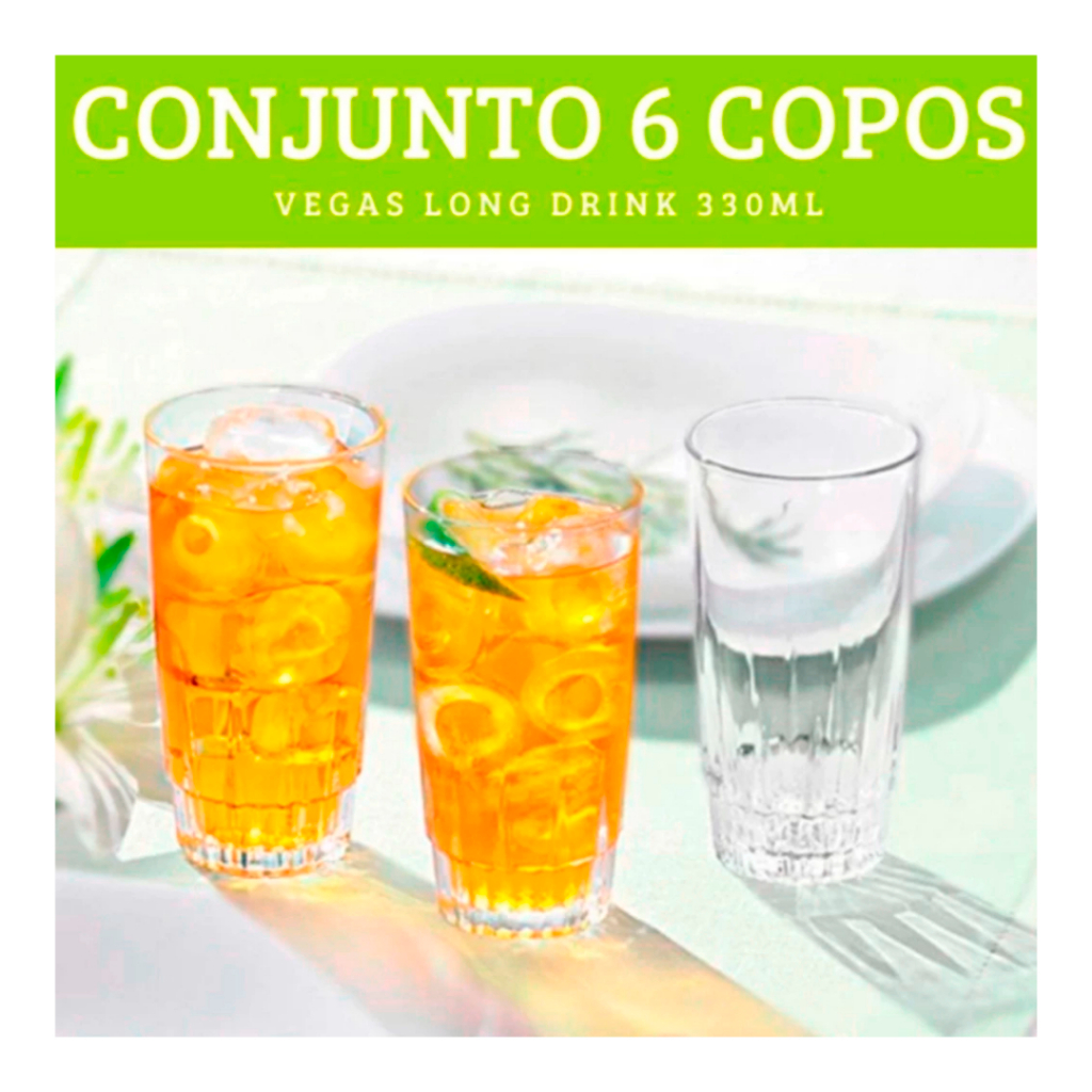 Kit Jogo de 06 Copos de Vidro Resistente Long Drink Nadir Vegas 240ML Long Drink Restaurante Bar