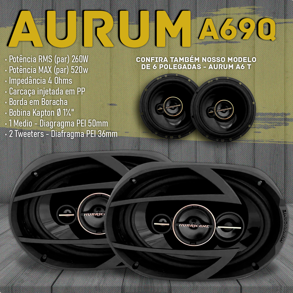 Par Alto Falante Triaxial 6x9 Polegadas 260w RMS A69 Q 520w MAX Hurricane
