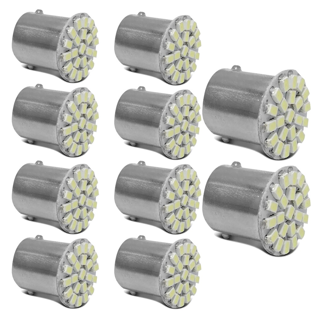 Kit com 10 Lâmpadas Led 67 Ba15 12v 22 Leds 1 Polo Luz Branca
