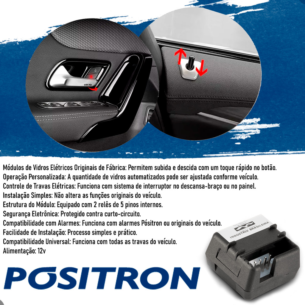 Módulo Trava Elétrica 2 Portas Vidros Automatizados TR111 Universal Carros Original Positron