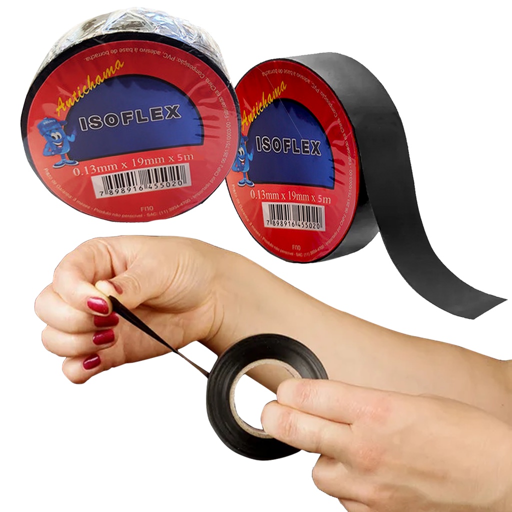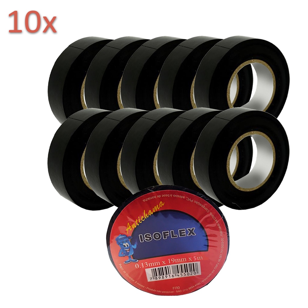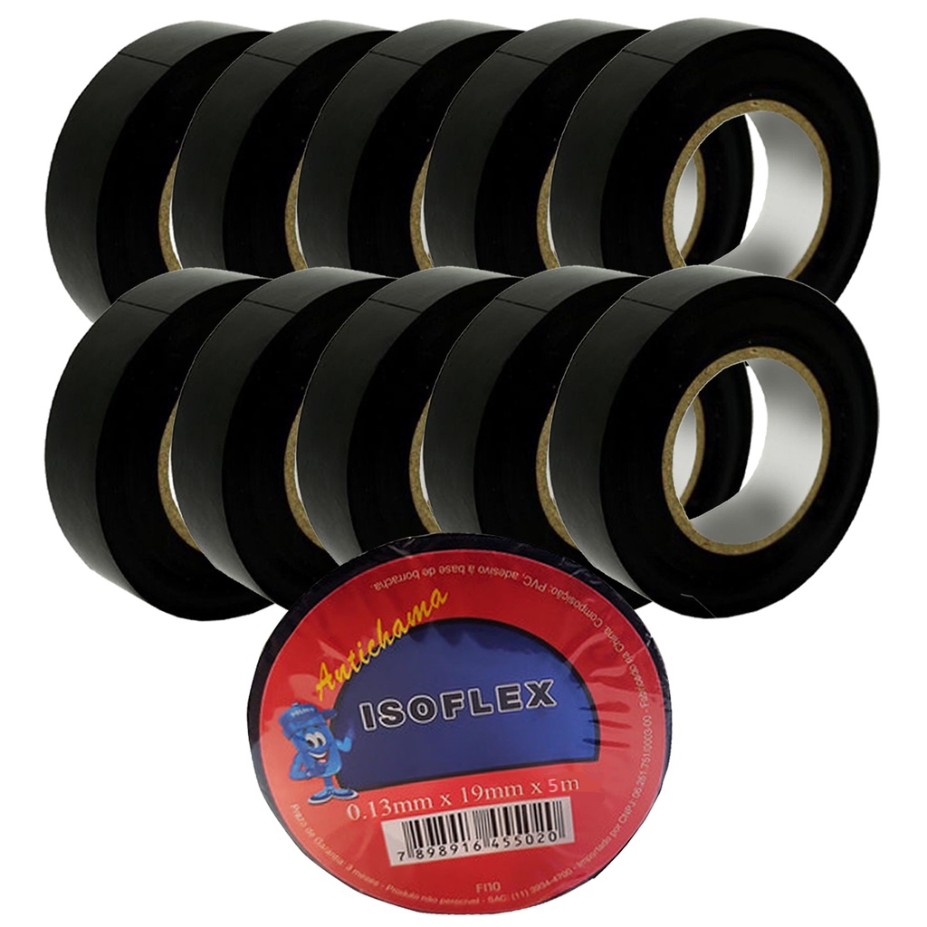 Kit 10 Unidades Fita Isolante Excelente Elasticidade Anti Chama Isoflex 19mm - 5m Cada IATF 16949