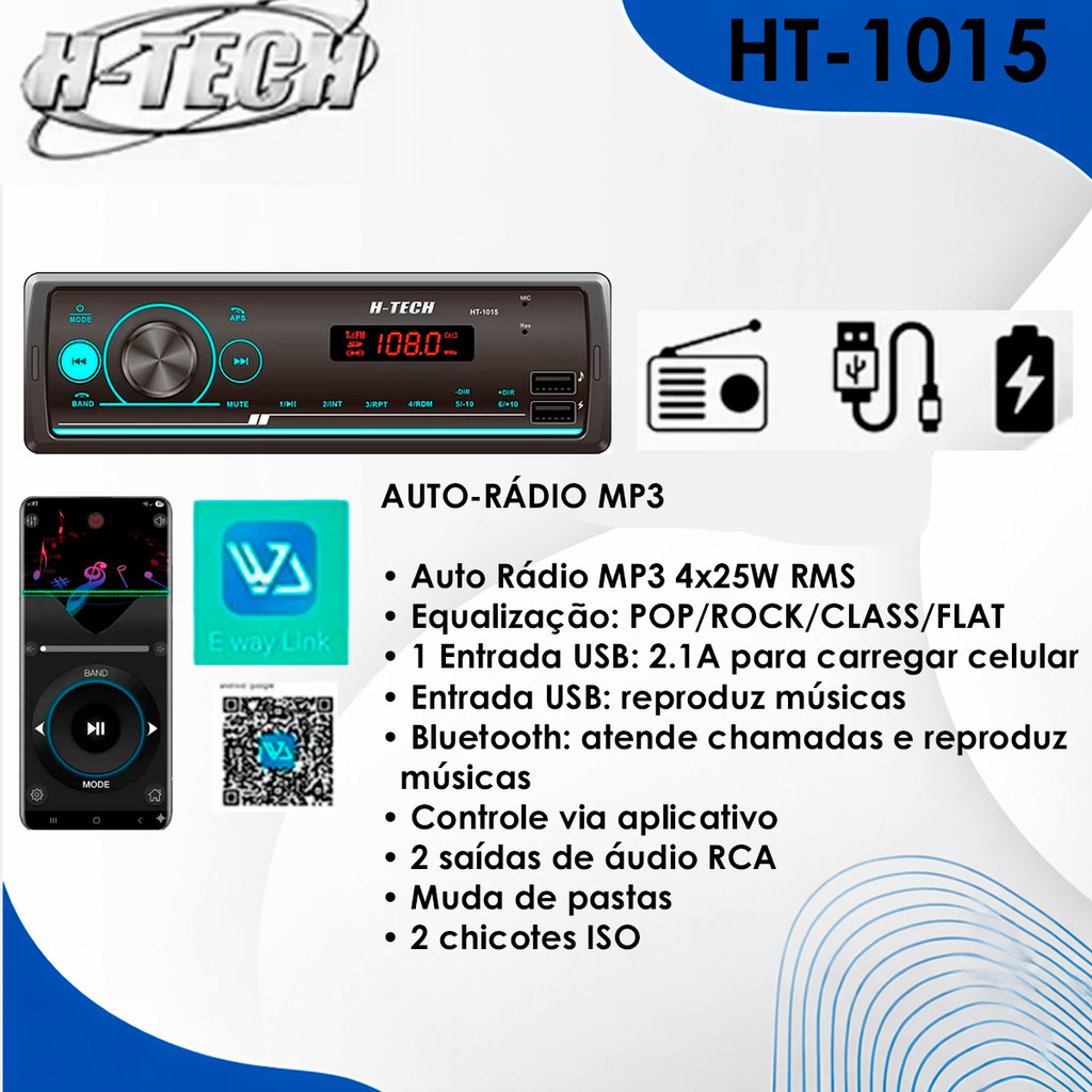 Rádio Bluetooth Portátil HTECH HT-1015 com USB e Carregador Rápido c/ APP