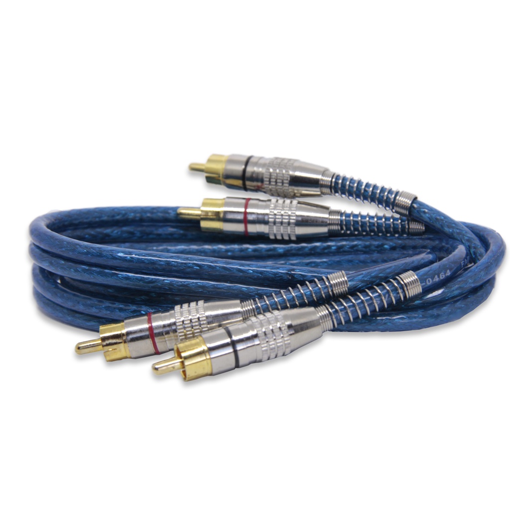 Cabo RCA 1 Metro Prime Plug Metal 5mm 1m Azul Svart Som Automotivo Stereo p/ Carro