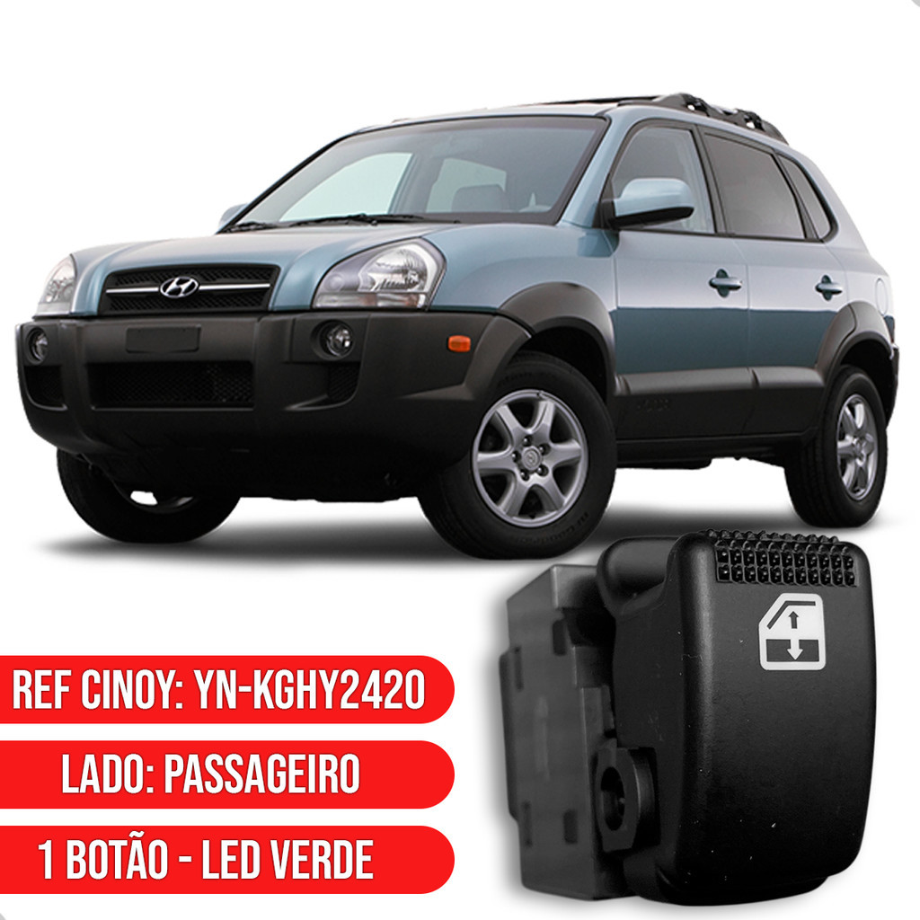 Botão Vidro Elétrico Lado Direito Passageiro Tucson 2005 até 2012 - LED Verde